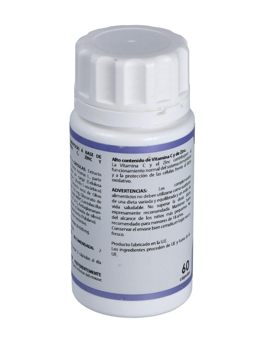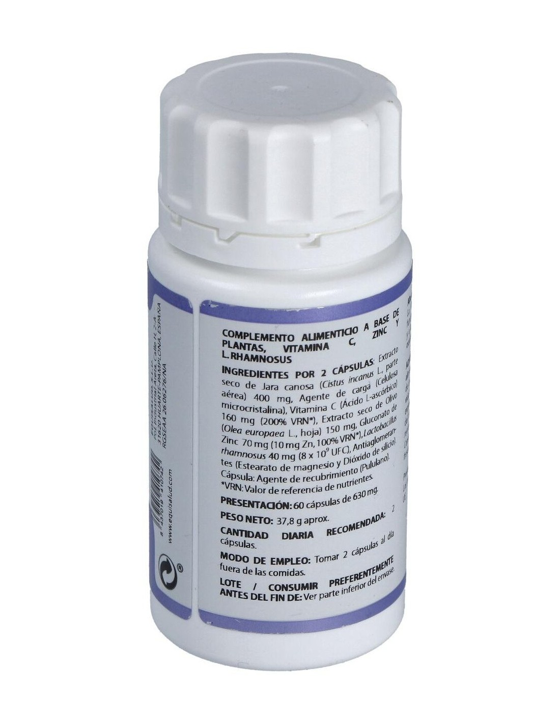 Complemento alimenticio en cápsulas de pululano de origen vegetal, que está especialmente ideado para ayudar en el tratamiento de los trastornos infecciosos por virus, bacterias y trastornos inflamatorios, gracias a su compuesto elaborado a base de plantas, vitamina C, zinc y lactobacillus rhamnosus. No está recomendado para menores de 18 años.