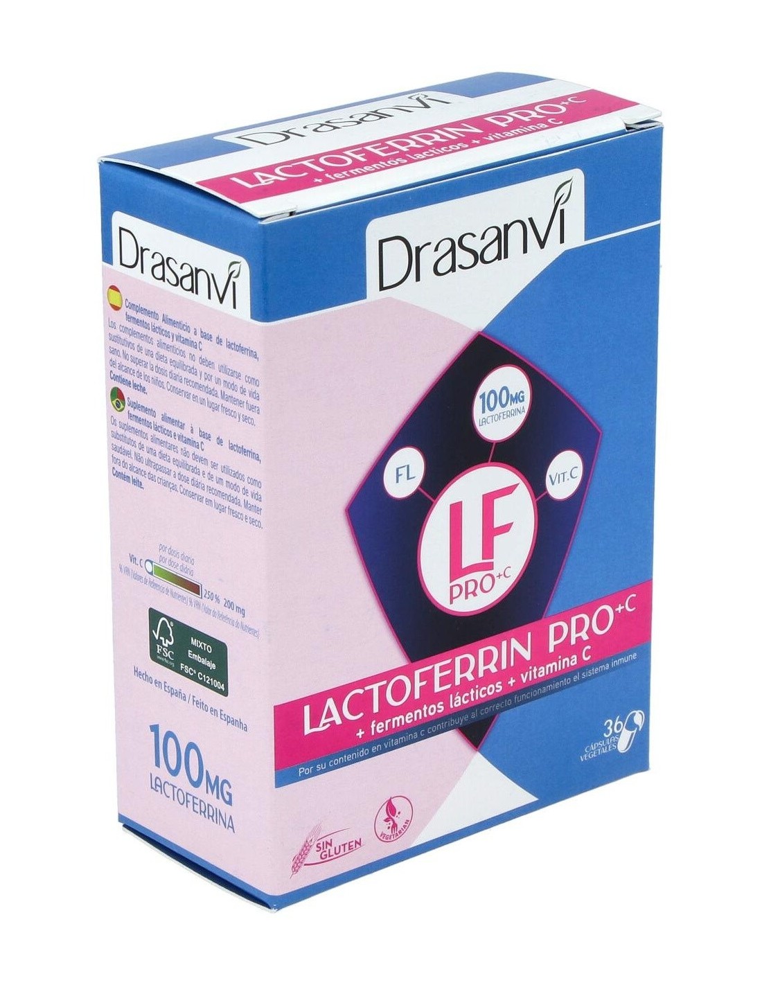 La lactoferrina se trata de una glicoproteína que se encuentra en el calostro y en la leche. Tiene la cualidad de unirse al hierro, lo que le confiere mucha de sus propiedades. El efecto de la Lactoferrina, se potencia con el efecto de los Fermentos Lácticos y la vitamina C, que contribuye al correcto funcionamiento del sistema inmune.