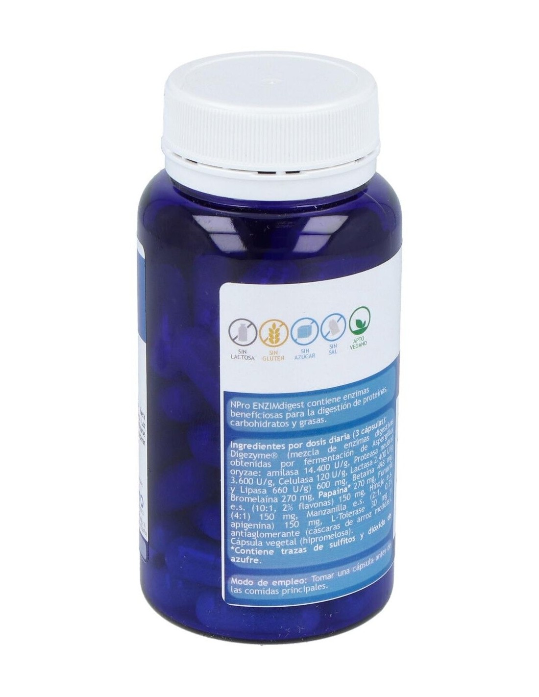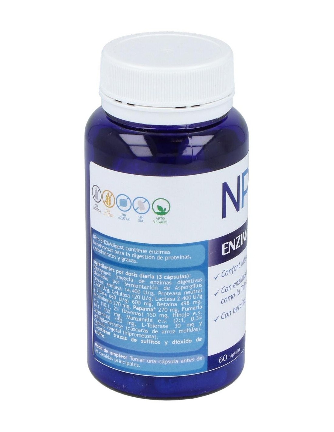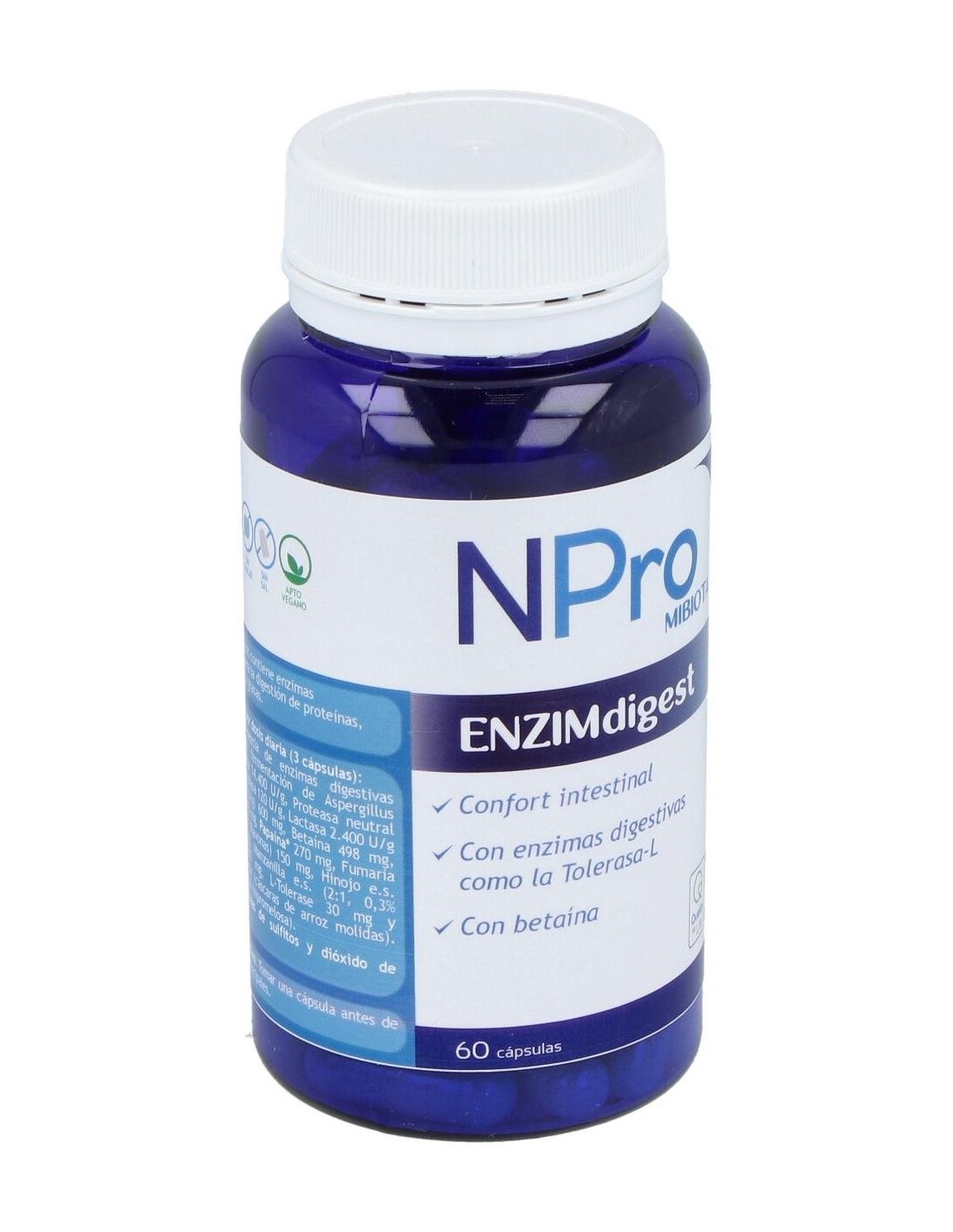 Formulado con enzimas de procedencia vegetal y fermentativa, que apoyan la normal asimilación de carbohidratos, grasas y proteínas. Además contiene Betaína HCI natural, que colabora en la absorción de vitaminas y minerales promoviendo el PH correcto del estómago y tracto intestinal para una normal digestión.