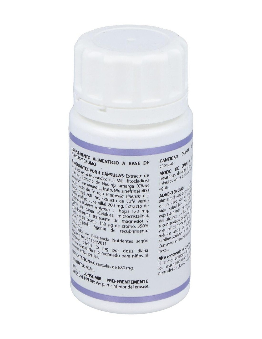 Nopal (300 mg), Citrus Aurantium (200 mg), Té rojo (50 mg), alcachofera (30 mg), Alcachofa, Naranjo amargo.