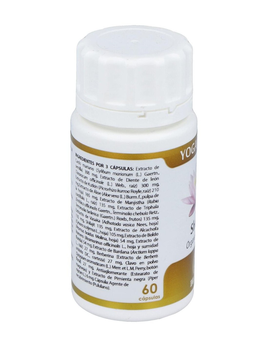 Cardo mariano extracto seco (Silybum marianum (L.) Gaertn., semilla, 80% silimarina, 30% silibina + isosibilina), 100 mg: diente de león extracto seco (Taraxacum officinale (L.) Web., raíz, 2% inulina), 100 mg: kutkin extracto seco (Picrorhiza kurroa Royle, raíz, 5% kutkina), 70 mg: aloe extracto seco (Aloe vera (L.) Burm. f., pulpa de la hoja, ratio 200:1), 55 mg: manjistha extracto seco (Rubia cordifolia L., raíz, ratio 10:1), 45 mg: triphala extracto seco (Emblica officinalis Gaertn., Terminalia chebula Retz., Terminalia bellerica (Gaertn.) Roxb., frutos, 30% taninos, ratio 20:1), 45 mg: vasaka extracto seco (Adhatoda vasica Nees, hojas, ratio 4:1), 45 mg: PrimaVie® (shilajit purificado, >50% ácidos fúlvicos, > 10,3% Dibenzo-a-pironas más Dibenzo-a-pironas cromoproteínas), 45 mg: alcachofa extracto seco (Cynara scolymus L., hojas, 5% cinarinas), 35 mg: boldo extracto seco (Peumus boldus Molina, hojas, 0,05% boldina), 18 mg: romero extracto seco (Rosmarinus officinalis L., hoja y sumidad florida, 2% ácido rosmarínico), 18 mg: bardana extracto seco (Arctium lappa L., raíz, 0,3% ácido clorogénico), 9 mg: berberina (extracto seco de Berberis aristata DC., corteza de las ramas, 97% berberina, ratio 100:1), 9 mg: clavo polvo (Syzygium aromaticum (L.) Merr. et L.M. Perry, botón floral, 150 ml/Kg de aceite esencial), 9 mg: pimienta negra extracto seco (Piper nigrum L., fruto, 95% piperina, ratio 25:1), 2 mg. Excipiente tecnológico: estearato de magnesio (antiaglomerante), c.s. Envoltura: polisacárido de origen vegetal (pululano).