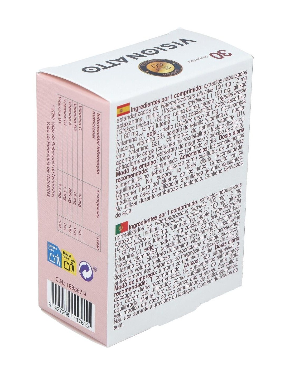 Sinergia de extractos de plantas con vitaminas como la B2 y A que contribuyen al mantenimiento de la visión en condiciones normales.