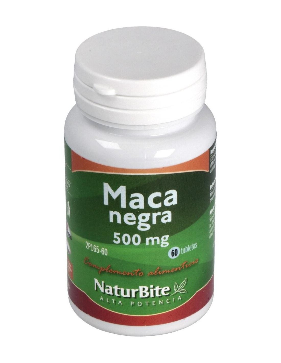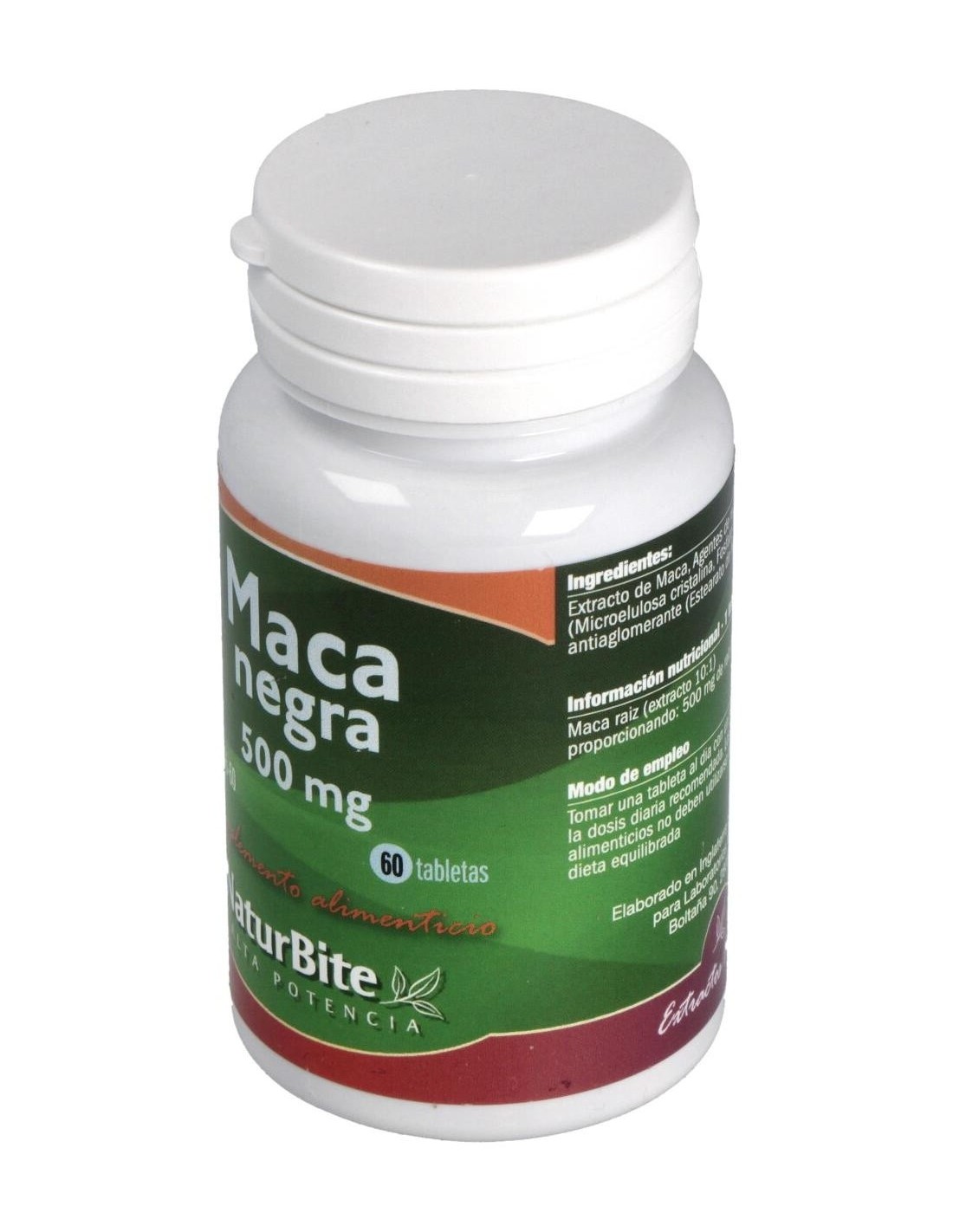 Naturbite Maca Negra 500mg 60caps complemento alimenticio elaborado a base de maca negra, contribuye a energizar y vigorizar el cuerpo. la maca es originaria de américa del sur, y fue utilizada tradicionalmente como un estimulante natural del organismo. contiene minerales como magnesio, calcio, fósforo, potasio, manganeso, azufre, sodio, selenio, yodo, silicio, hierro y cobre. es fuente de vitaminas b1, b2, c y e. ayuda a estimular el aumento de la libido y tiene propiedades tónicas. con ingredientes procedentes de cultivos orgánicos. clínicamente probado. consumir dentro de una dieta sana y equilibrada.