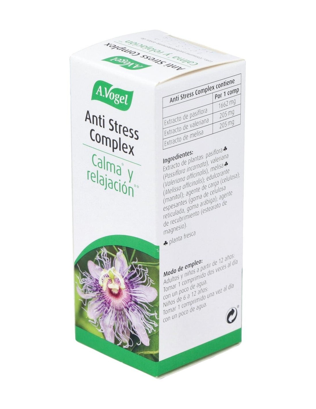 Extracto de plantas: pasiflora (Passiflora incarnata), valeriana (Valeriana officinalis), melisa (Melissa officinalis): edulcorante (manitol): agente de carga (celulosa): espesantes (goma de celulosa reticulada, goma arábiga): agente de recubrimiento (estearato de magnesio), planta fresca.