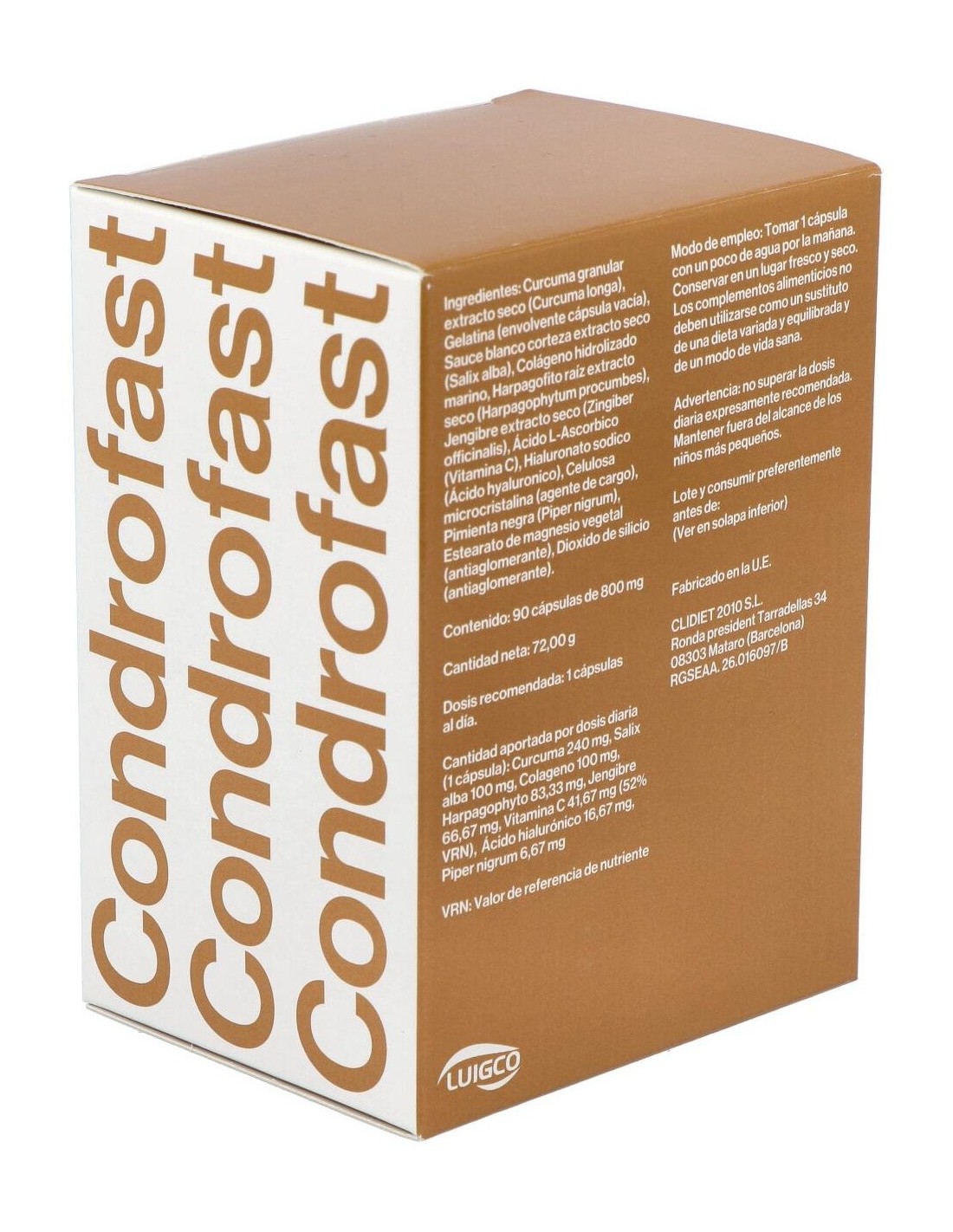 Cúrcuma granular, Sauce blanco corteza, Raíz de harpagofito, Pimienta negra, Ácido hialurónico y colágeno marino hidrolizado.