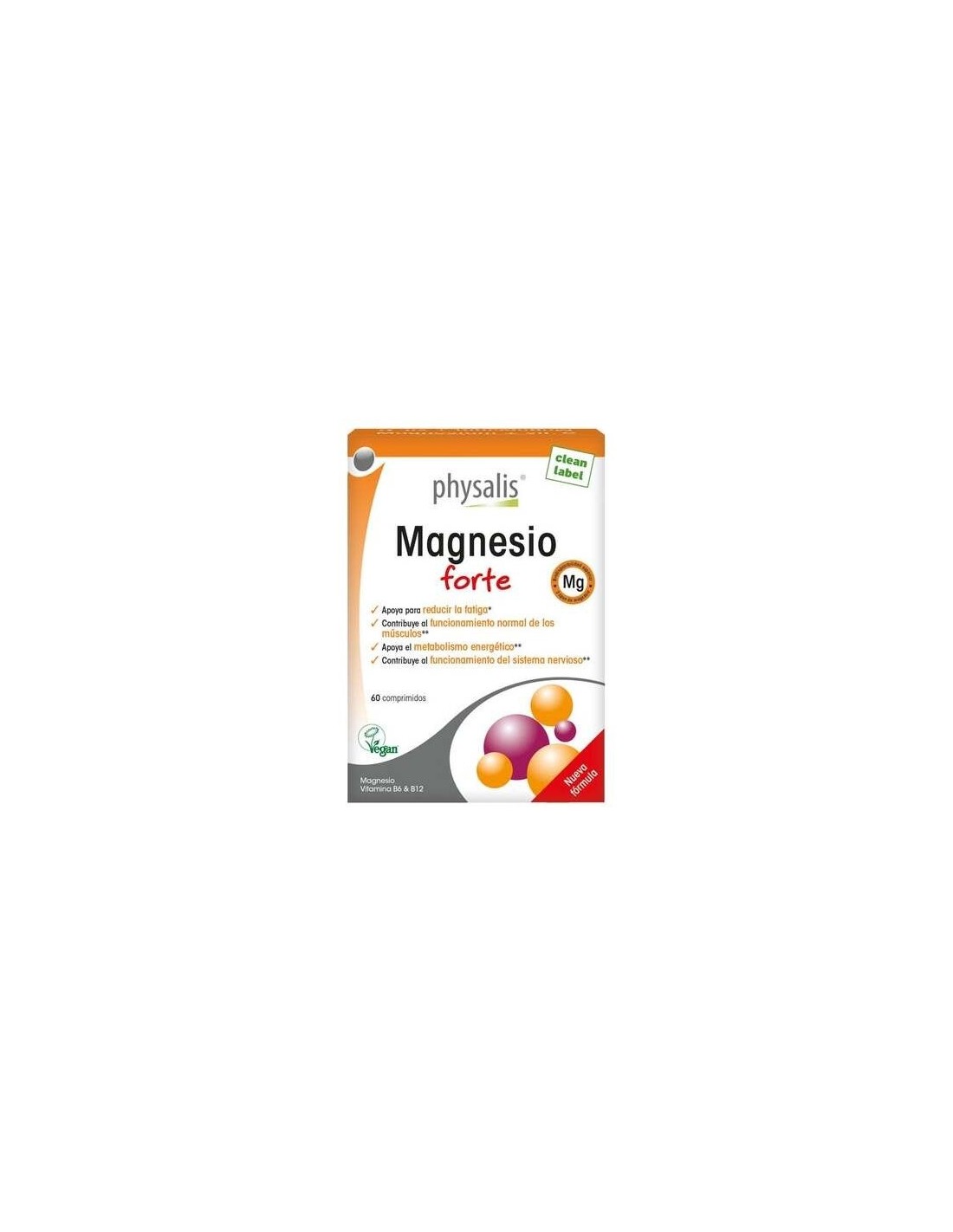 El magnesio ayuda a disminuir el cansancioy la fatiga y contribuye al funcionamiento normal del sistema nervioso.También contribuye al funcionamiento normal de los músculos. Physalis Magnesio forte contiene una sinergia de tres formas de magnesio de fácil asimilación: el bisglicinato y el glicerofosfato de magnesio, así como magnesio marino extraído de agua de mar rica en minerales (Aquamin® Mg). Producto vegano.