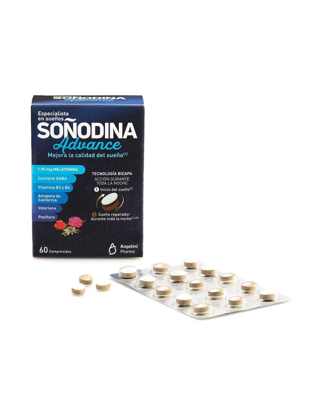 NATURA ESSENZIALEGracias a su innovadora tecnología en comprimido bicapa, permite una acción durante toda la noche: primero se libera la capa de Melatonina, que ayuda a conciliar el sueño y después la capa de los extractos vegetales, que ayudan a mantener un sueño de calidad (valeriana) y un descanso saludable (pasiflora). Indicado en adultos a partir de 18 años.