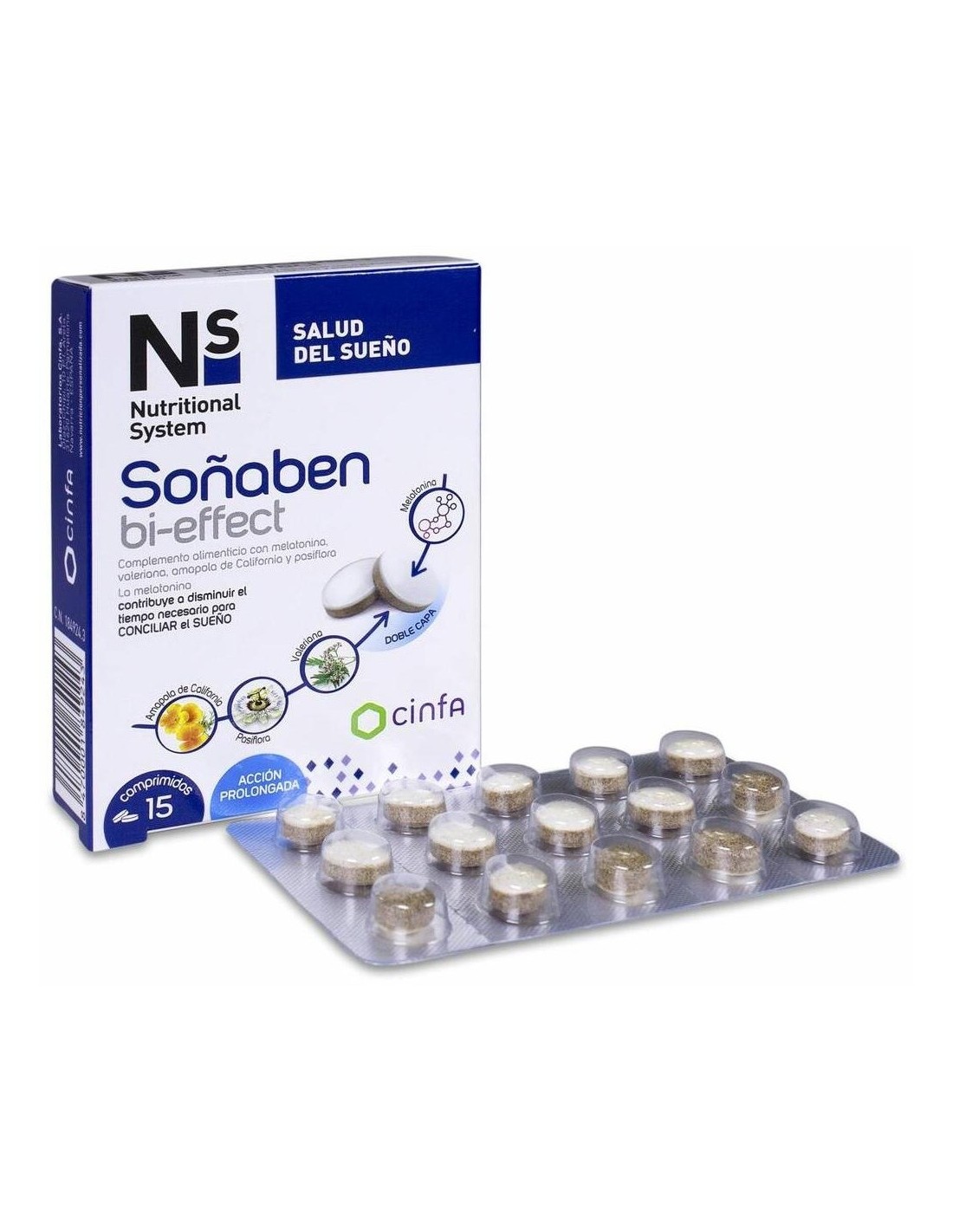 Producto que incorpora una novedosa tecnología que permite crear comprimidos bicapa, controlando la liberación de cada componente en el momento adecuado del sueño. La melatonina se libera al principio para ayudar a conciliar el sueño y la pasiflora, valeriana y amapola de california se libera posteriormente para ayudar a tener un sueño reparador y de calidad.