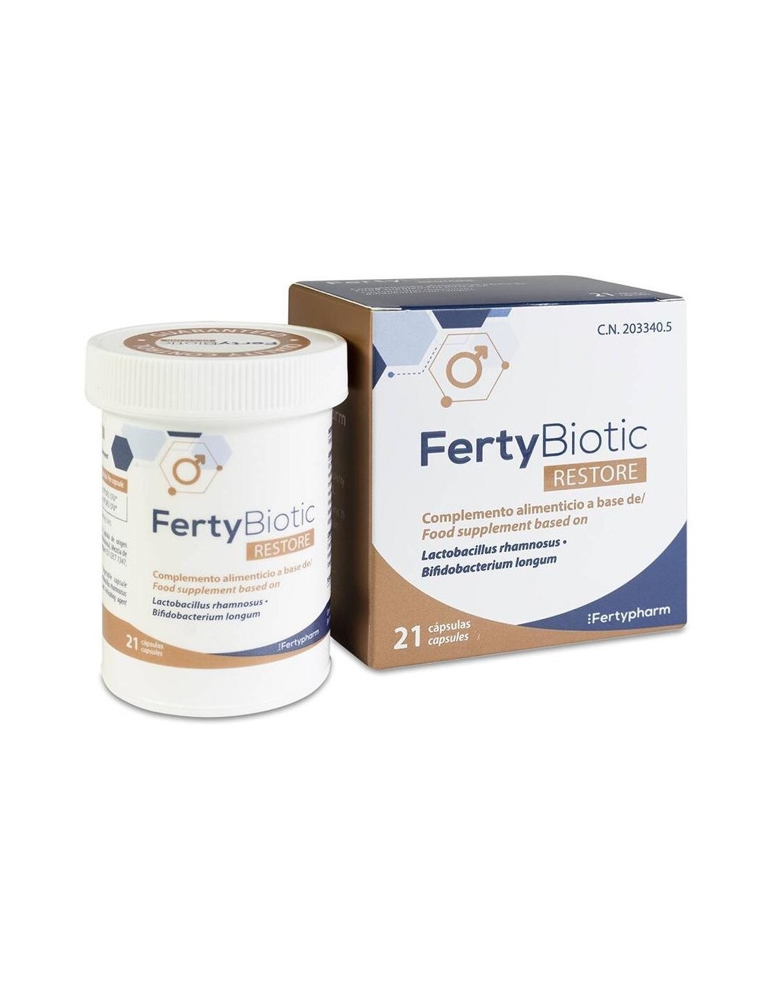 Complemento a base de probióticos orales especialmente indicado para el hombre. FertyBiotic Restore incorpora en su fórmula dos cepas de probióticos específicas: Lactobacillus rhamnosus BPL15 y Bifidobacterium longum ES1CECT7347. Algunas de las funciones de la microbiota son el mantenimiento de la integridad de la barrera intestinal, la producción de ácidos grasos y vitaminas, la reabsorción de los metabolitos bacteriano y la activación del sistema inmune. Funciones algunas de ellas con relación en la fertilidad.