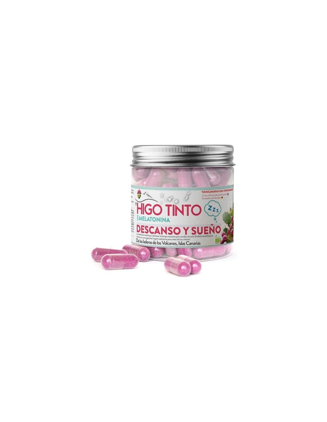 TUNO CANARIASEl Higo Tuno Canario HIGO-TINTO (Opuntia Dillenii) se cosecha en los barrancos y laderas bajo los volcanes. Crece en las hojas de los cactus Nopales traídos a Canarias hace siglos desde América donde ha sido un alimento básico durante miles de años. Un tesoro escondido de las Islas Rico en Fibra, Vitaminas B1, B2, B6, C, Potasio, Calcio, Magnesio Hierro y Zinc que ha sido usado en la medicina popular canaria y los pueblos indígenas americanos durante cientos de años. En este producto se combina con melatonina, la cual contribuye a reducir el tiempo necesario para conciliar el sueño.