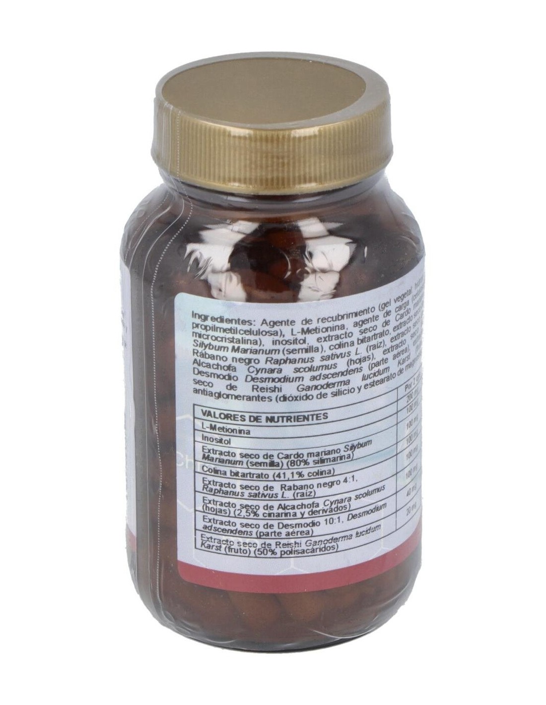 Por 1 cápsula: Ácido Alfa-Lipoico (50 mg), Extracto cardo mariano (25 mg), Vitamina E (20 mg), Vitamina B3 (18 mg), Excipientes tecnológicos (7.5 mg), Seleniometionina (2.5 mg), Vitamina B6 (2 mg), Vanadil sulfato.