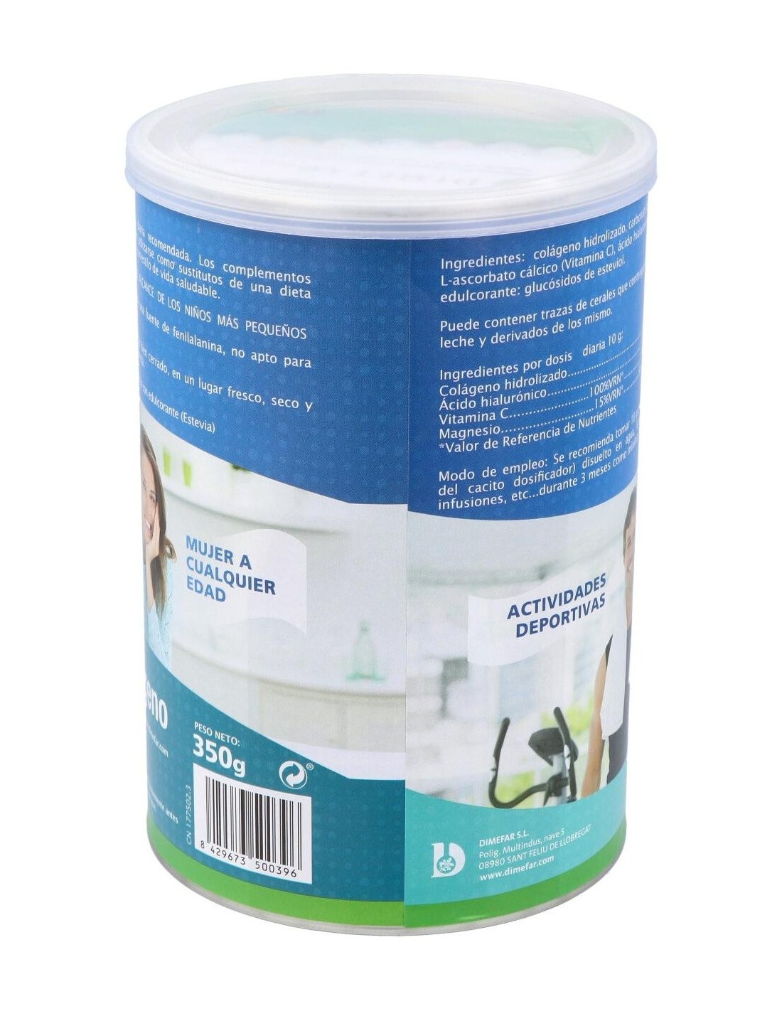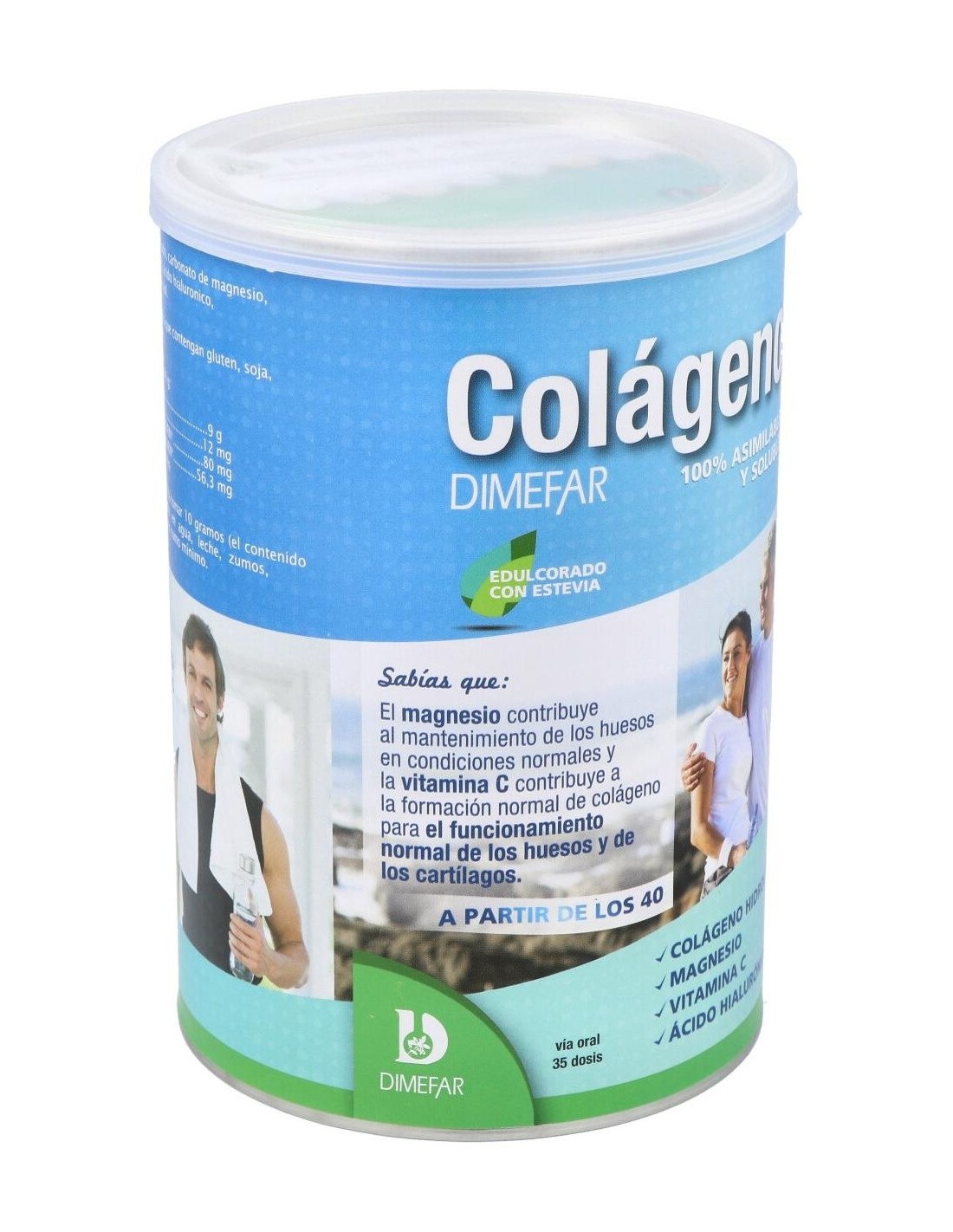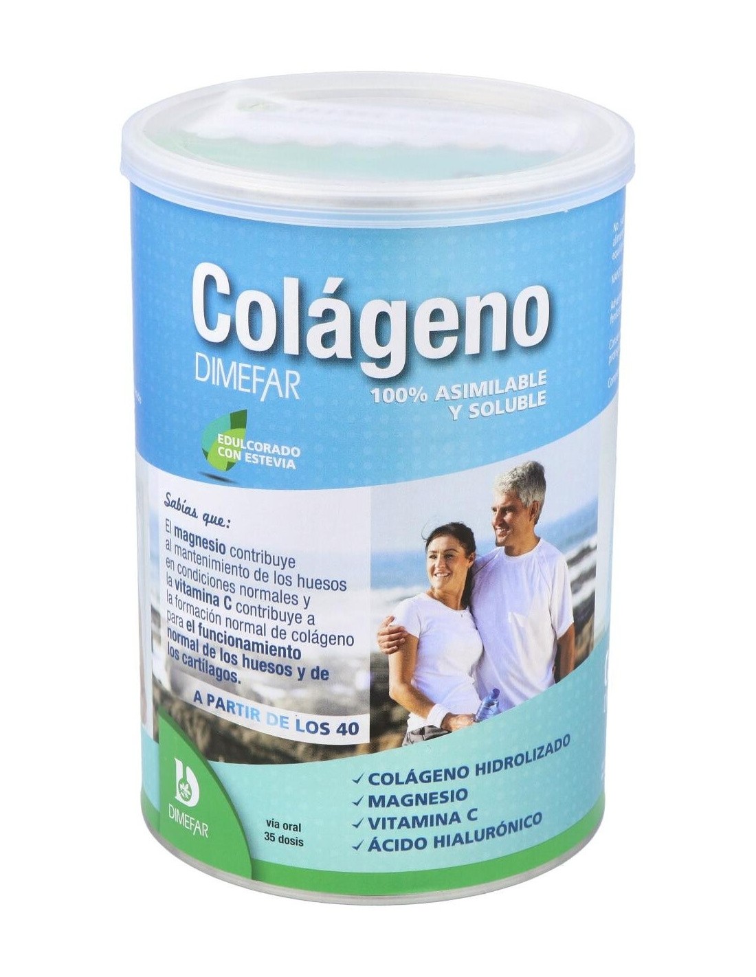 Dimefar Colágeno Polvo 350g es un complemento alimenticio elaborado con colágeno hidrolizado de alta digestibilidad y biodisponibilidad y combinado con ácido hialurónico, vitamina C, magnesio. Este producto contribuye a mantener una buena salud articular.