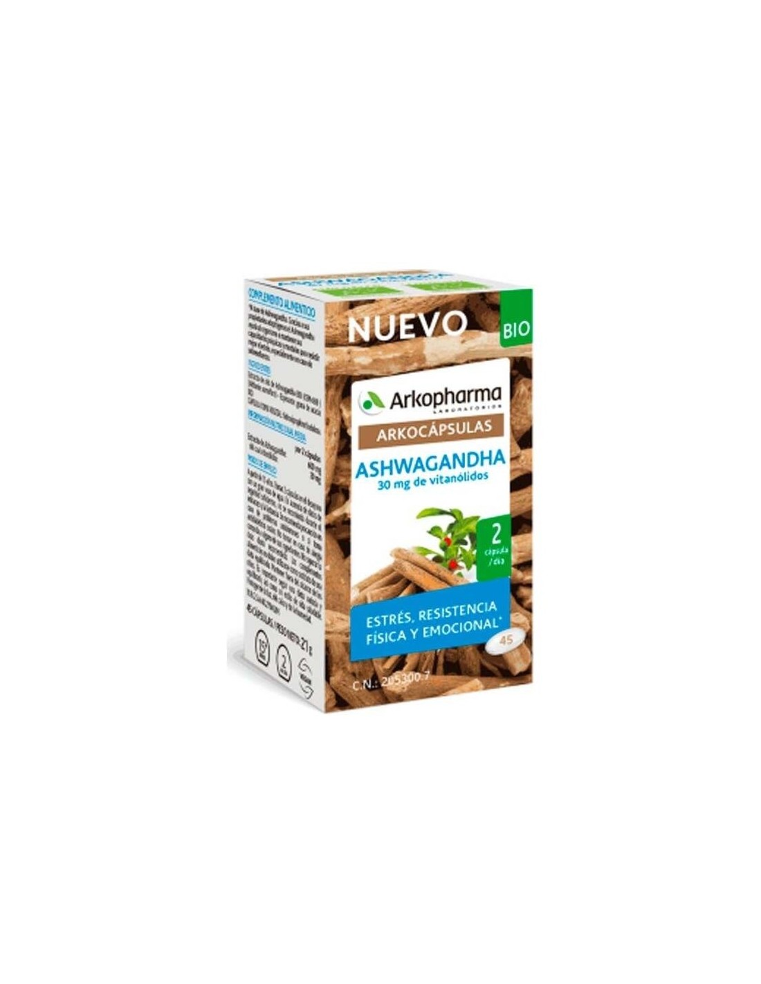 Gracias a sus propiedades adaptógenas la Ashwagandha ayuda al organismo a mantener sus capacidades psíquicas y mentales para resistir mejor al estrés, especialmente en caso de sobreesfuerzo. Producto apto para veganos. A partir de 15 años.