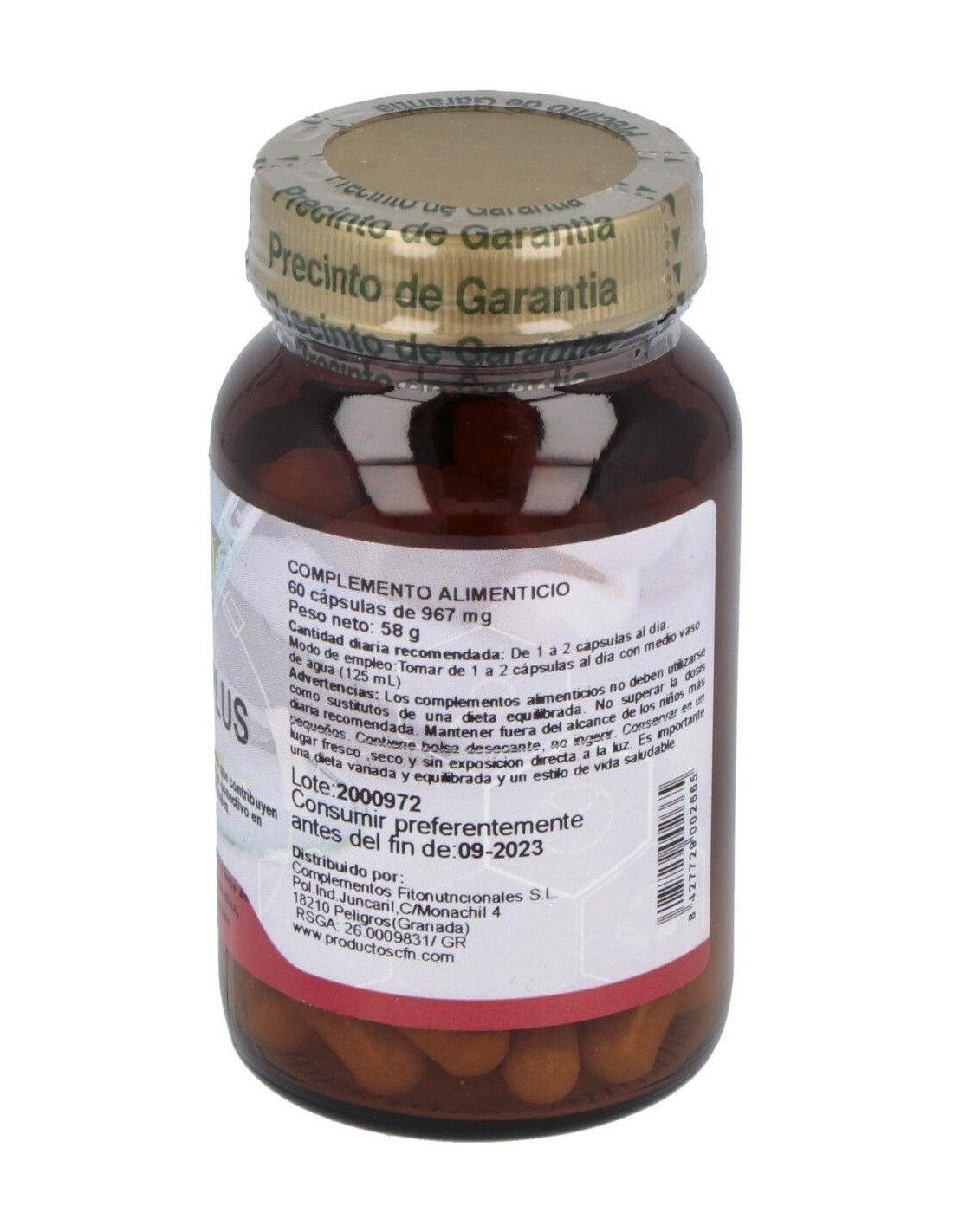 Es importante tomar el complemento alimenticio según la dosis recomendada por el fabricante y en el contexto de una dieta equilibrada. Las personas con enfermedades digestivas y/o crónicas de otra índole deberán consultar antes con un/a profesional sanitario/a.