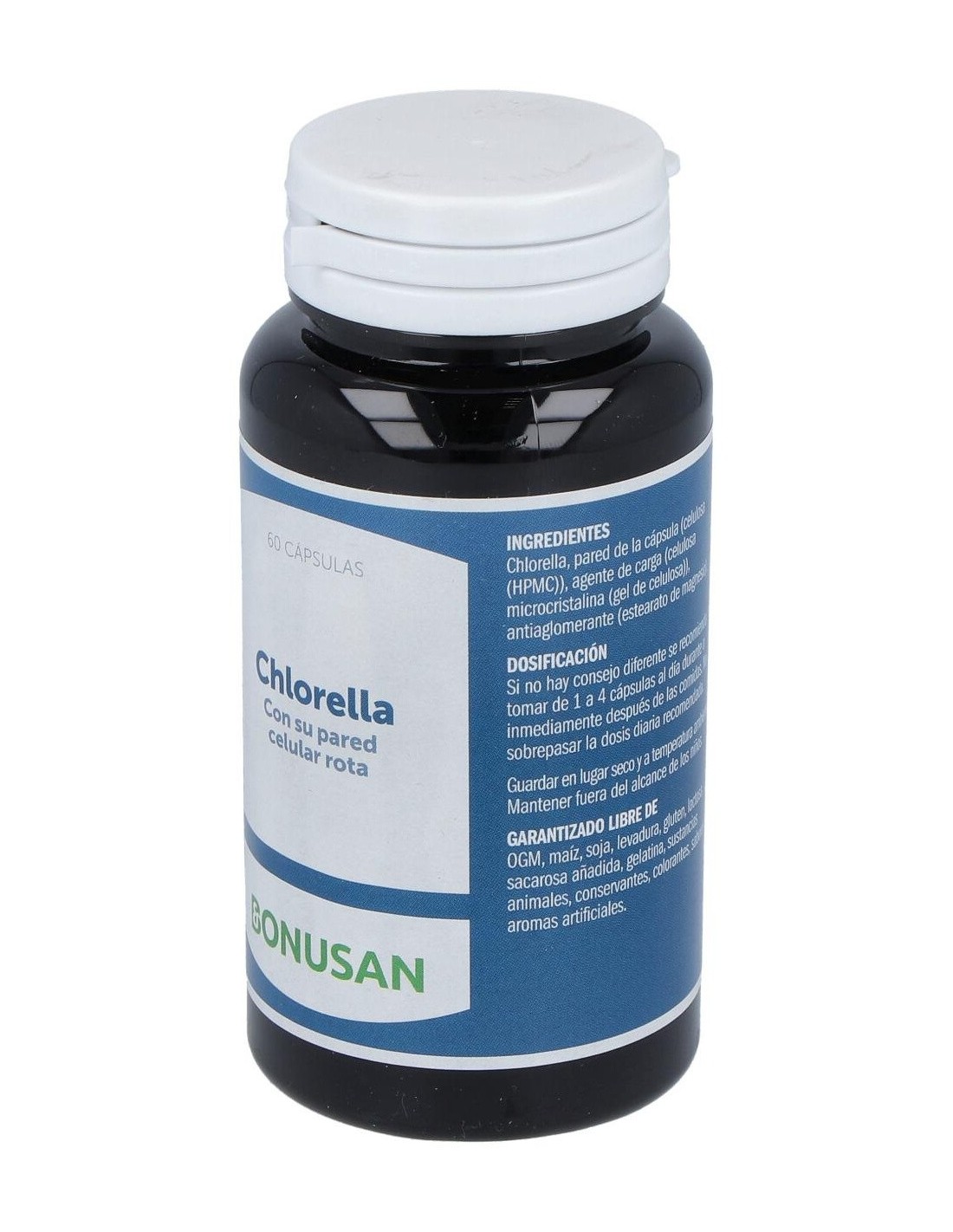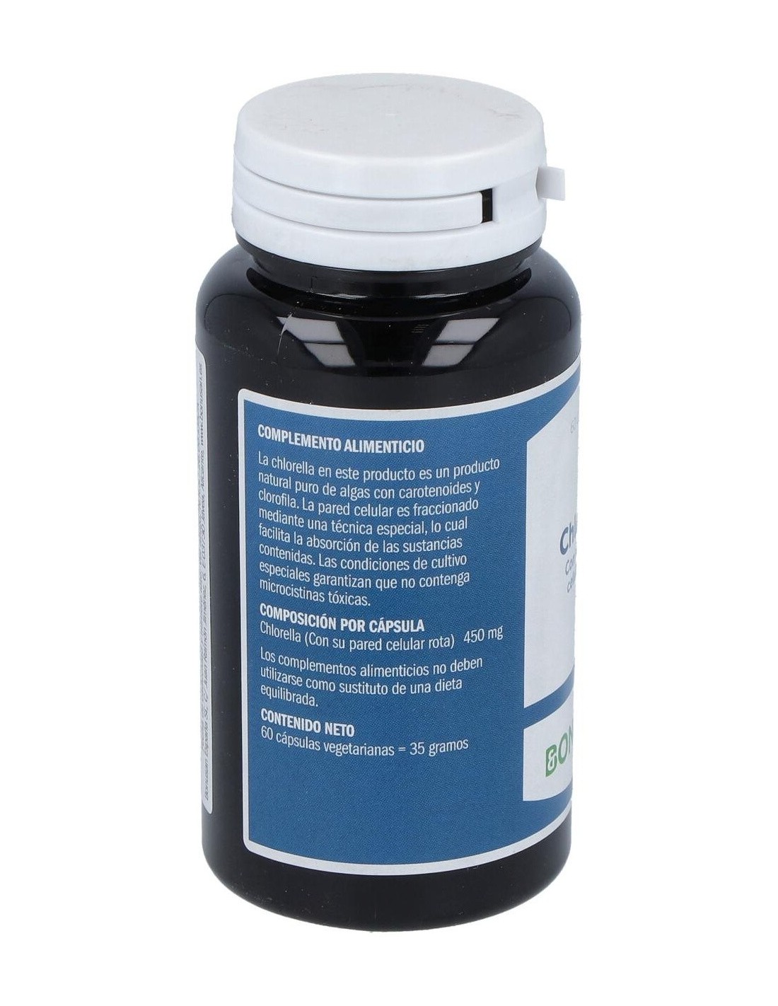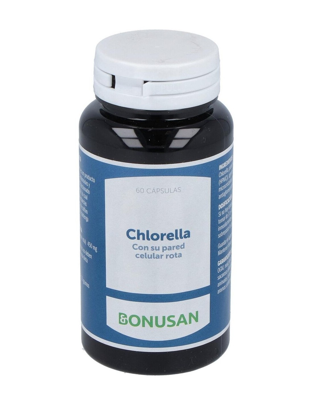 Complemento alimenticio en formato cápsula, formulado a base de clorela, y que está indicado para reforzar el buen estado del estómago, el intestino y el hígado. La clorela es un alga de agua dulce que absorbe grandes cantidades de luz solar, por lo que contiene muchas vitaminas, minerales, carotenoides y clorofila.