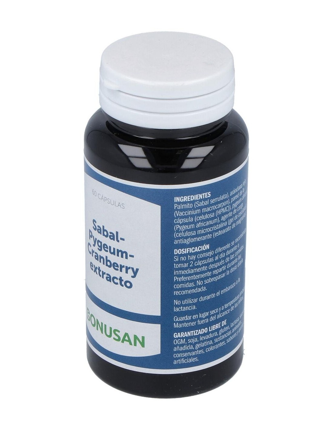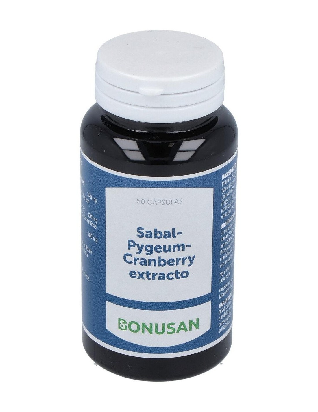 Extracto de Cranberry (Vaccinium macrocarpon fructus) (36:1), estandarizado en mín. 1% antocianósidos, mín. 1% proantocianósidos y min. 2% fenoles totales...............................................................300 mg