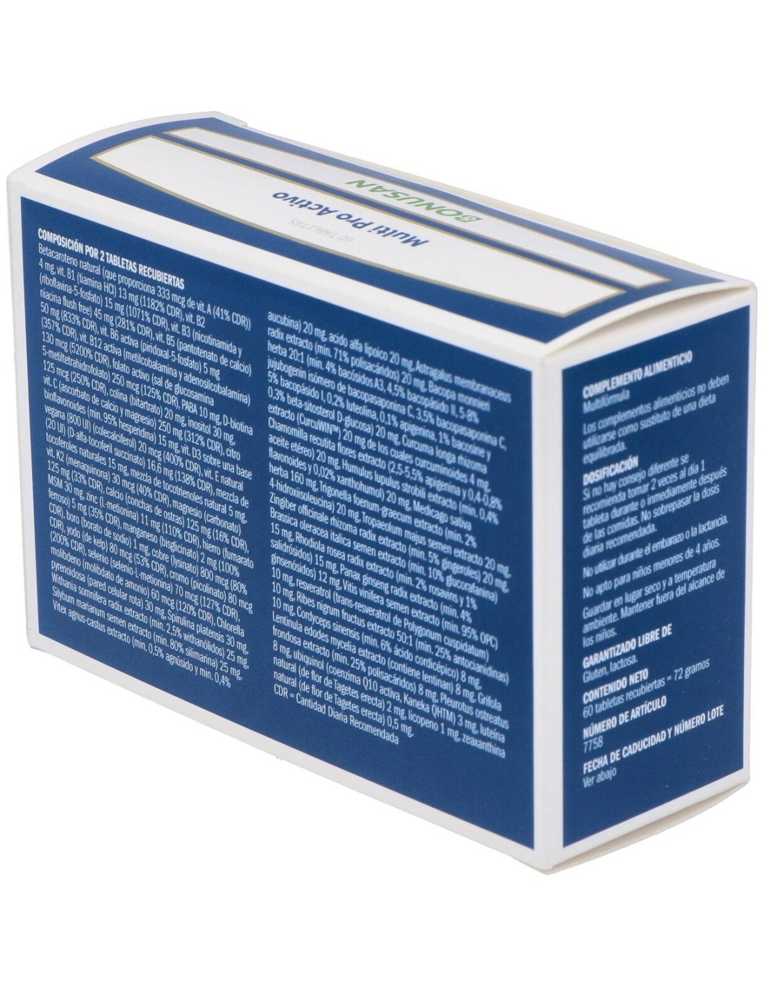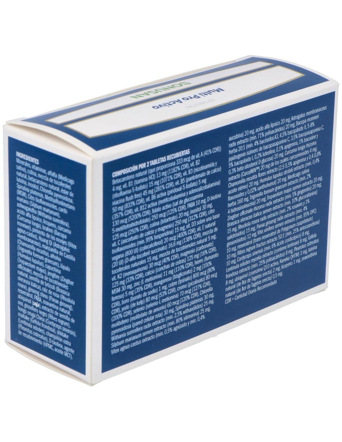 Betacaroteno Natural (Que Proporciona 333 Mcg De Vit A), Vit. B1 (Tiamina Hcl), Vit. B2 (Riboflavina-5-Fosfato), Vit. B3 (Nicotinamida Y Niacina Flush-Free), Vit. B5 (Pantotenato De Calcio), Vit. B6 (Piridoxal-5-Fosfato), Vit. B12 (Metilcobalamina Y Adenosilcobalamina), Folato Activo (Sal De Glucosamina 5-Metiltetrahidrofolato), Paba, D-Biotina, Colina (Bitartrato), Inositol, Vit. C (Ascorbato De Calcio Y Magnesio), Citro-Bioflavonoides (Min. 95% Hesperidina), Vit. D3 (Colecalciferol), Vit. E Natural (20 Ui) (D-Alfa-Tocoferil Succinato), Mezcla De Tocoferoles Naturales, Vit. K2 (Menaquinona), Magnesio (Carbonato), Calcio (Conchas De Ostras), Msm , Zinc (L-Metionina), Hierro (Bisglicinato), Manganeso (Bisglicinato), Boro (Borato De Sodio), Cobre (Bisglicinato), Yodo (De Algas), Cromo (Picolinato), Selenio (Selenio-L-Metionina), Molibdeno (Molibdato De Amonio), Chlorella Pyrenoidosa (Pared Celular Rota), Spirulina Platensis, Withania Somnífera Radix Extracto (Min. 2,5% Withanólidos), Silybum Marianum Semen Extracto (Min. 80% Silimarina), Vitex Agnus Castus Extracto (Min. 0,5% Agnúsido Y Min. 0,4% Aucubina), Ácido Alfa Lipoico, Astragalus Membranaceus Radix Extracto (Min. 71% Polisacáridos) , Bacopa Monnieri Herba 20:1 (Min. 4% Bacósidos A3, 4,5% Bacopásido Ii, 5-8% Jujubogenin Isómero De Bacopasaponina C, 3,5% Bacopasaponina C, 5% Bacopásido I, 0,2% Luteolina, 0,1% Apigenina, 1% Bacosine Y 0,3% Beta-Sitosterol D-Glucosa), Curcuma Longa Extracto (Biocurcumina, Min. 80% Curcumina), Chamomilla Recutita Flores Extracto (2,5-5,5% Apigenina Y 0,4-0,8% Aceite Etéreo), Humulus Lupulus Strobili Extracto (Min. 0,4% Flavonoides Y 0,02% Xanthohumol) , Medicago Sativa Herba, Trigonella Foenum-Graecum Extracto (Min. 2% 4-Hidroxiisoleucina), Tropaeolum Majus Semen Extracto, Zingiber Officinale Rhizoma Radix Extracto (Min. 5% Gingeroles), Brassica Oleracea Italica Semen Extracto (Min. 10% Glucorafanina), Rhodiola Rosea Radix Extracto (Min. 2% Rosavins Y 1% Salidrósidos, Panax Ginseng Radix Extracto (Min. 4% Ginsenósidos), Vitis Vinifera Semen Extracto (Min. 95% Opc) Resveratrol (Trans-Resveratrol De Polygonum Cuspidatum), Ribes Nigrum Fructus Extracto 50:1 (Min. 25% Antocianidinas), Cordyceps Sinensis (Min. 6% Ácido Cordicépico), Lentinula Edodes Mycelia Extract (Contiene Lentinan), Grifola Frondosa Extracto (Min. 25% Polisacáridos), Pleurotus Ostreatus, Ubiquinol (Coenzima Q10 Activa, Kaneka Qhtm), Luteína Natural (De Flor De Tagates Erecta), Licopeno, Zeaxanthina Natural (De Flor De Tagates Erecta). Excipientes: Sustancias Adicionales: Agente De Recubrimiento (Hpmc, Aceite Mct).