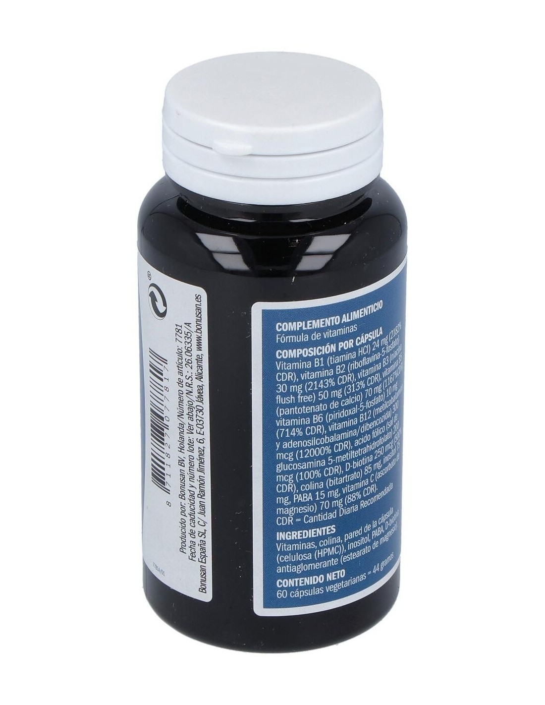 Contiene las 8 vitaminas del grupo B. La combinación de las vitaminas del grupo B en este complejo y las sustancias relacionadas con ellas contribuyen a la interacción entre los ingredientes. La vitamina B6 contribuye, entre otras cosas, al funcionamiento normal del sistema nervioso, a disminuir el cansancio y la fatiga y al metabolismo energético normal.