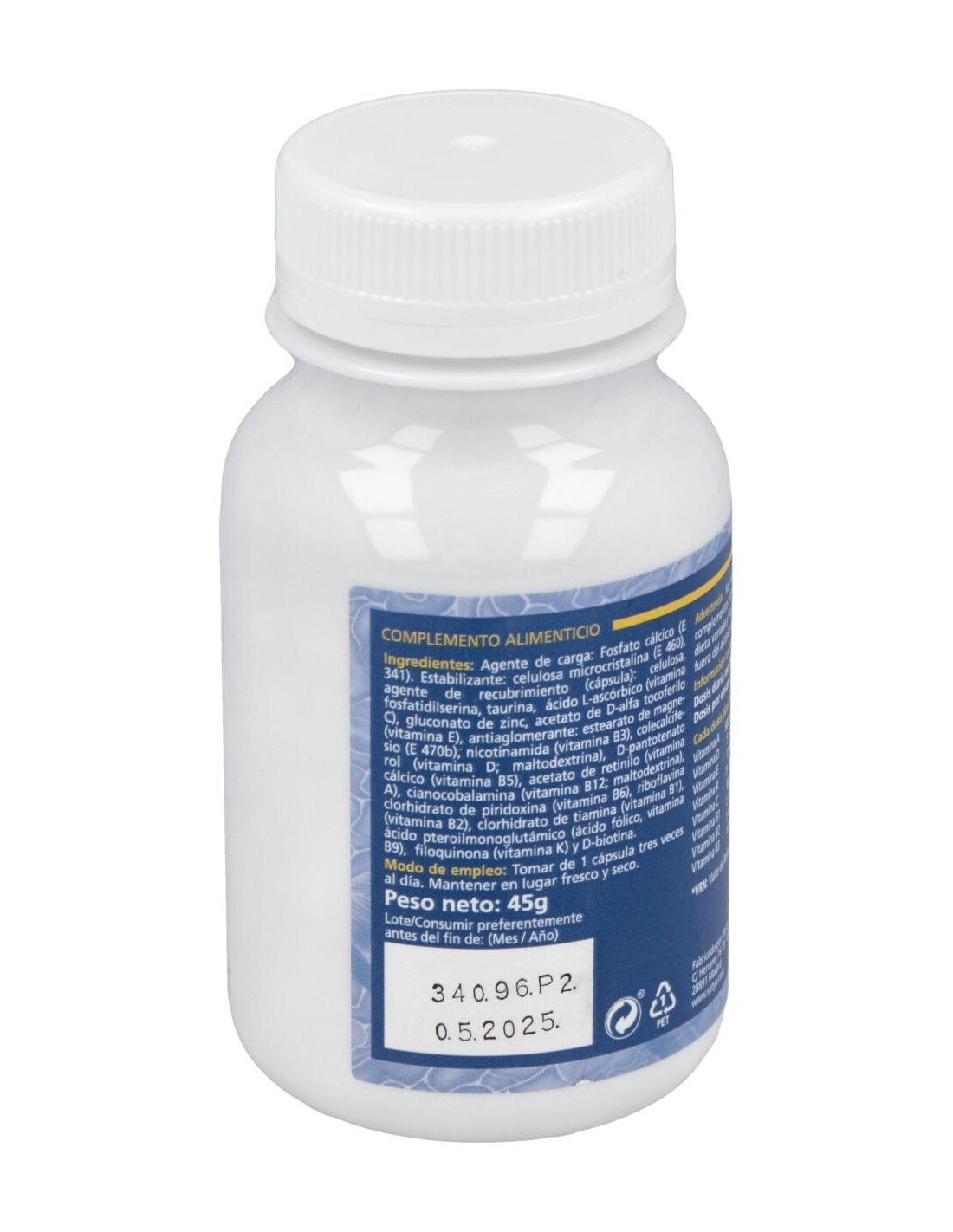 Cada 3 cápsulas aportan lecitina de soja rica en fosfatidilserina (300mg), ácido ascórbico-vitamina C (60mg= 100% CDR), taurina (300mg), vitamina E (10mg = 100% CDR), fosfatidilcolina (30mg), fosfatidiletanolamina (21mg), fosfatidilinositol (15mg), tiamina-vitamina B1 (1.1mg= 100% CDR), riboflavina-vitamina B2 (1.6mg= 100% CDR), niacina-vitamina B3 (18mg- 100% CDR),ácido pantoténico-vitamina B5 (3mg= 100% CDR), piridoxina-vitamina B6 (1.6mg= 100% CDR), RE vitamina A (700mcg= 100% CDR), cianocobalamina- vitamina B12 (1.4mcg=100% CDR), biotina (15mcg=100% CDR), ácido fólico (200mcg=100% CDR), inositol (13.5mg- sin CDR establecida). Celulosa microcristalina. Cápsula vegetal.