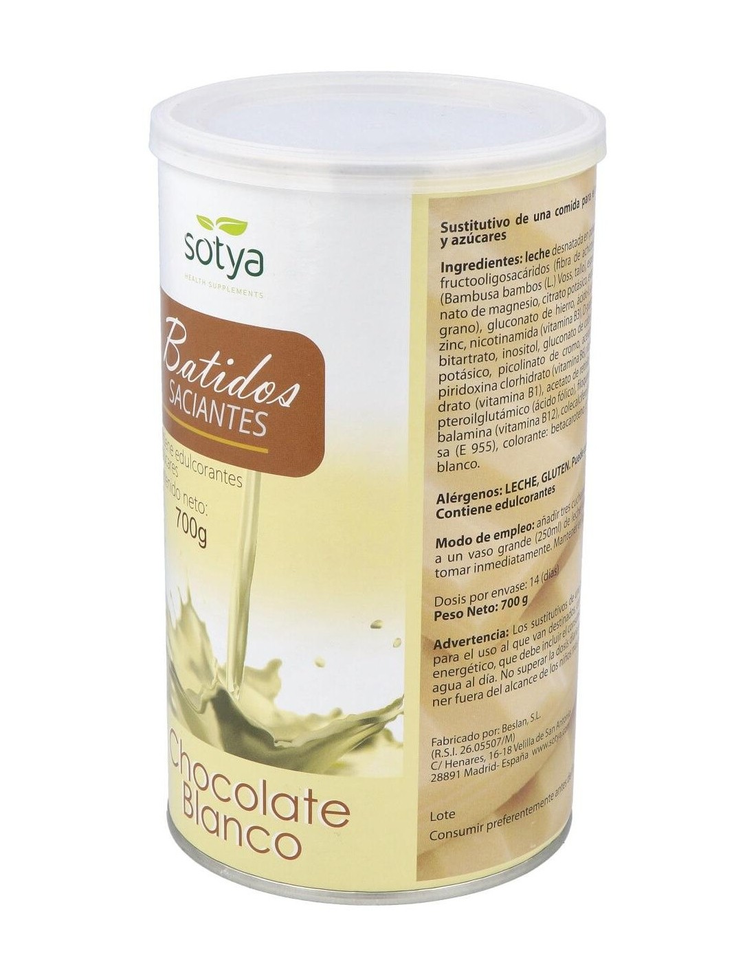 Batido Saciante Chocolate Blanco 700Gr. de Sotya
