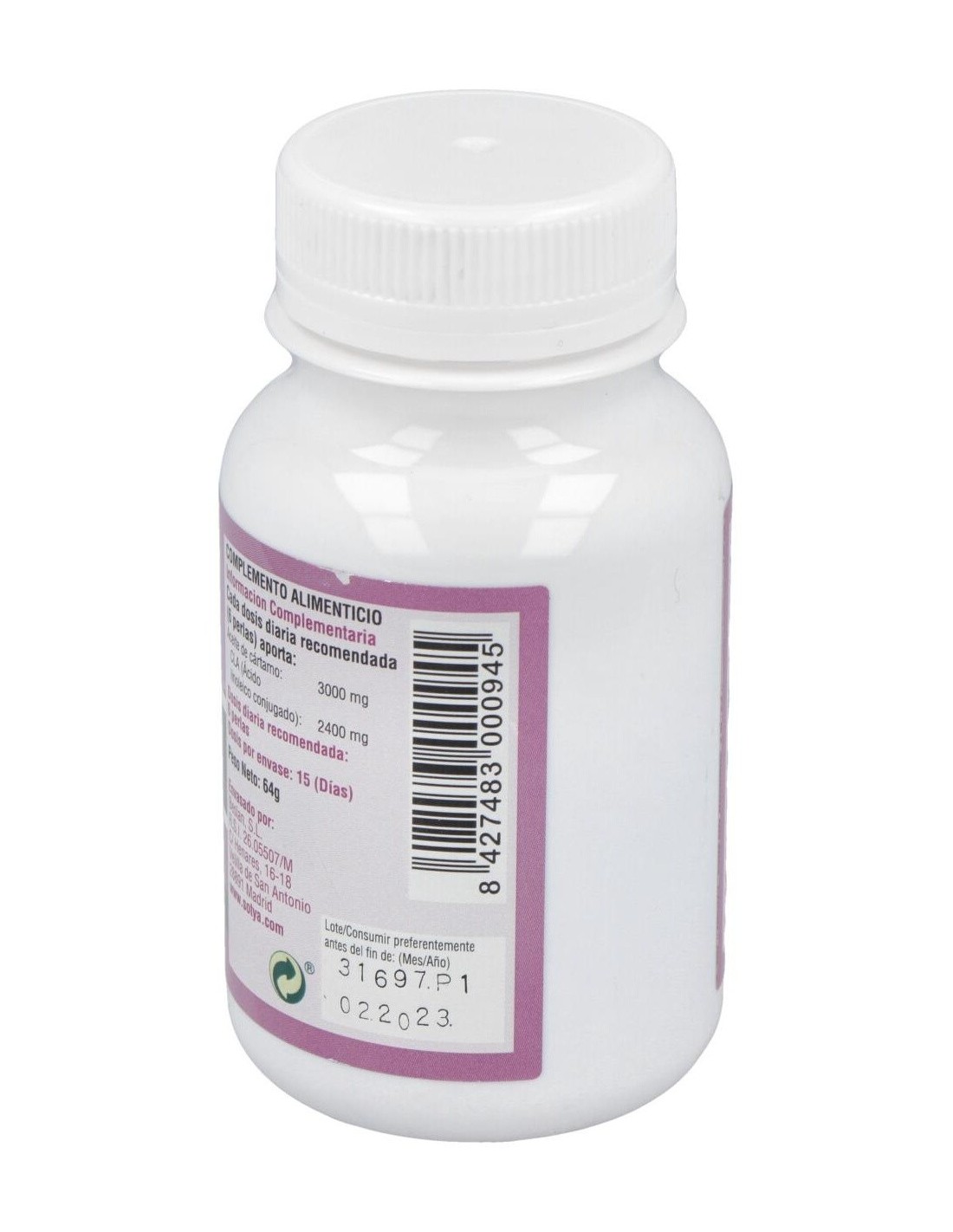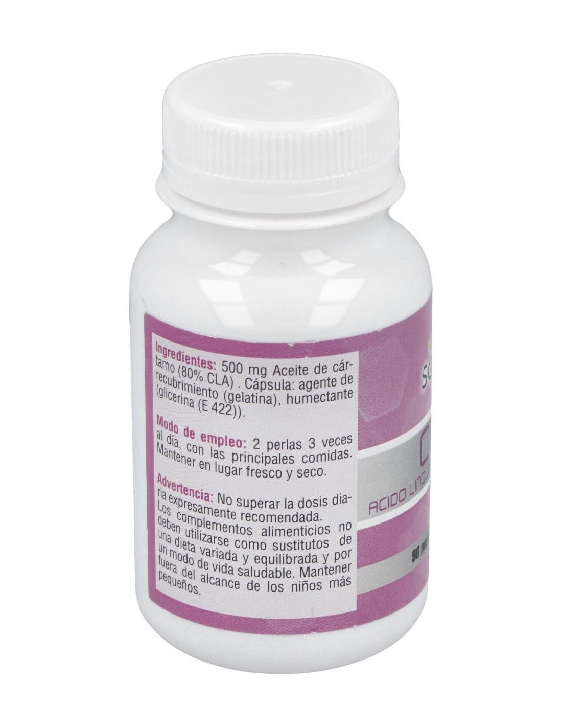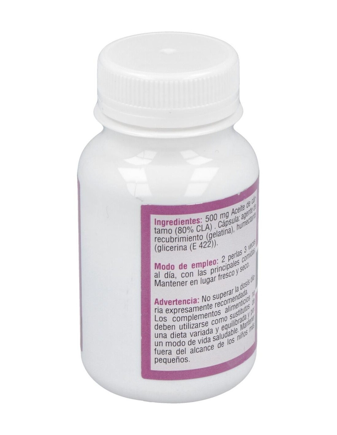 Cada cápsula contiene 500mg de ácido linoleico conjugado al 80%. Perla de gelatina y glicerina.