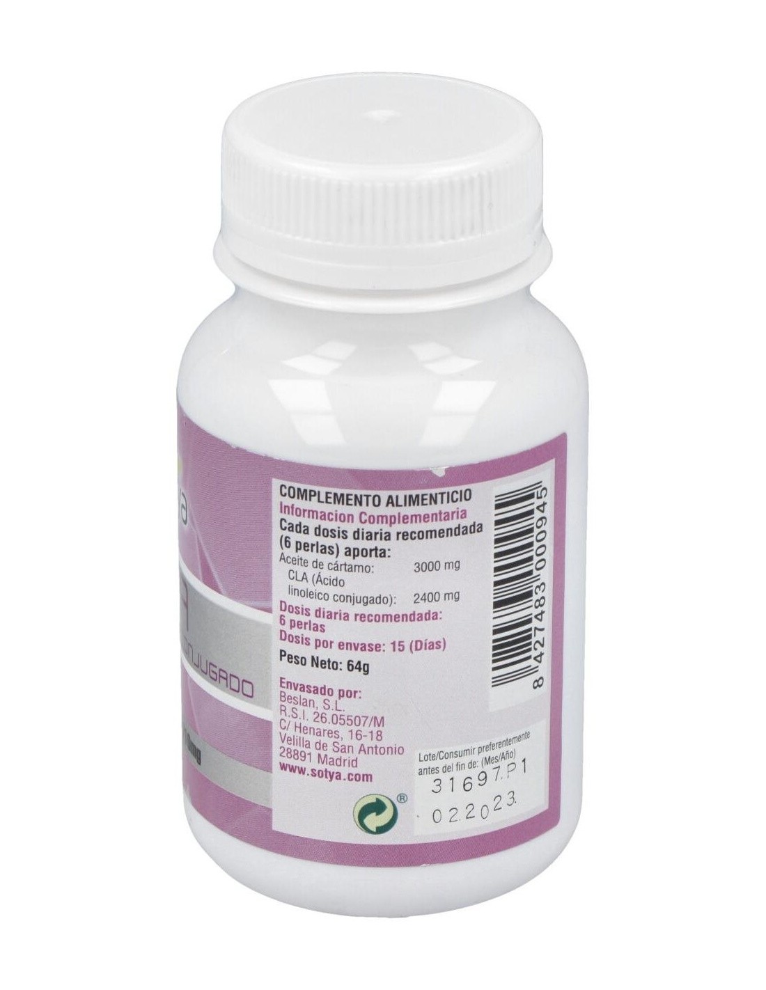 Sotya CLA 710mg son unas perlas que te ayudarán a disminuir la cantidad de grasa acumulada en tu organismo mediante su mayor metabolización. Los resultados de Sotya CLA se potencian si sigues una dieta hipocalórica acompañada de ejercicio físico continuado.