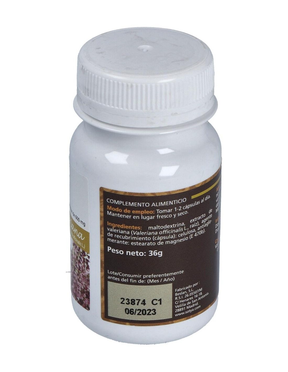500mg de valeriana officinalis con 0,3% ácido valerénico.