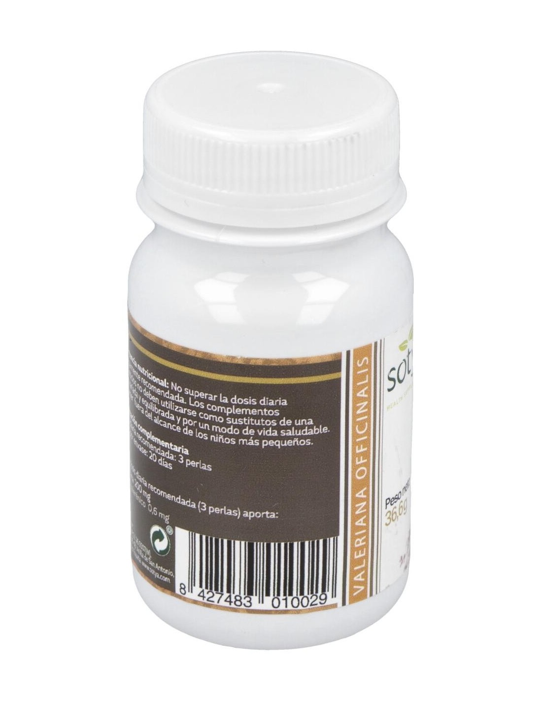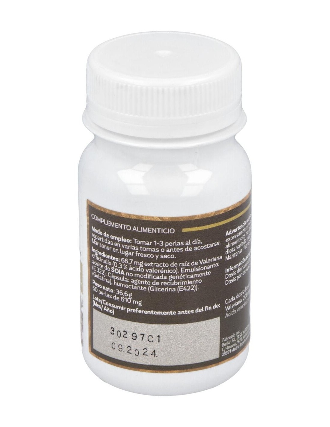 300mg de valeriana (Valeriana officinalis) con 0,5% de ácido valerénico. Perla de gelatina y glicerina. Peso total, incluida cobertura, 440mg.