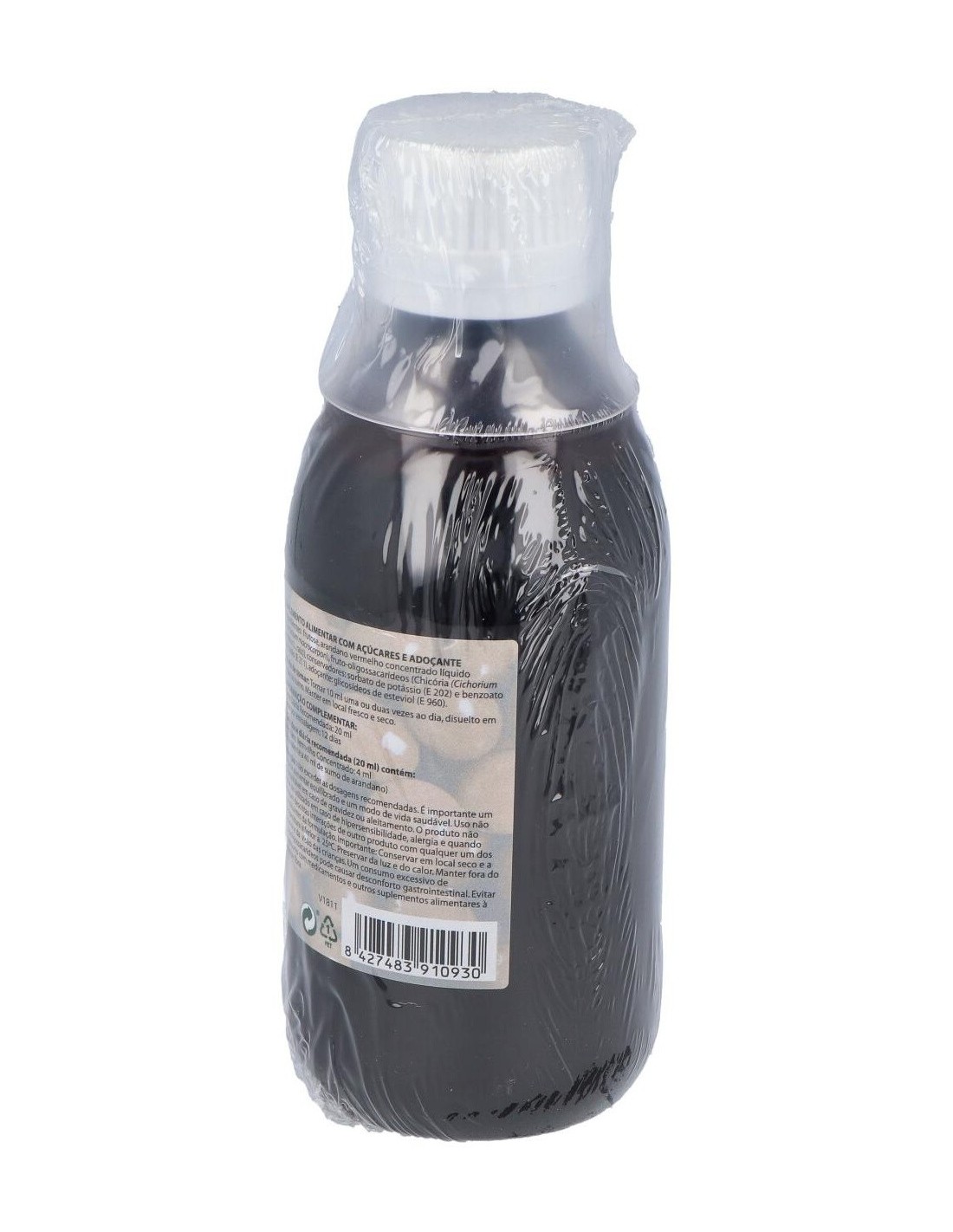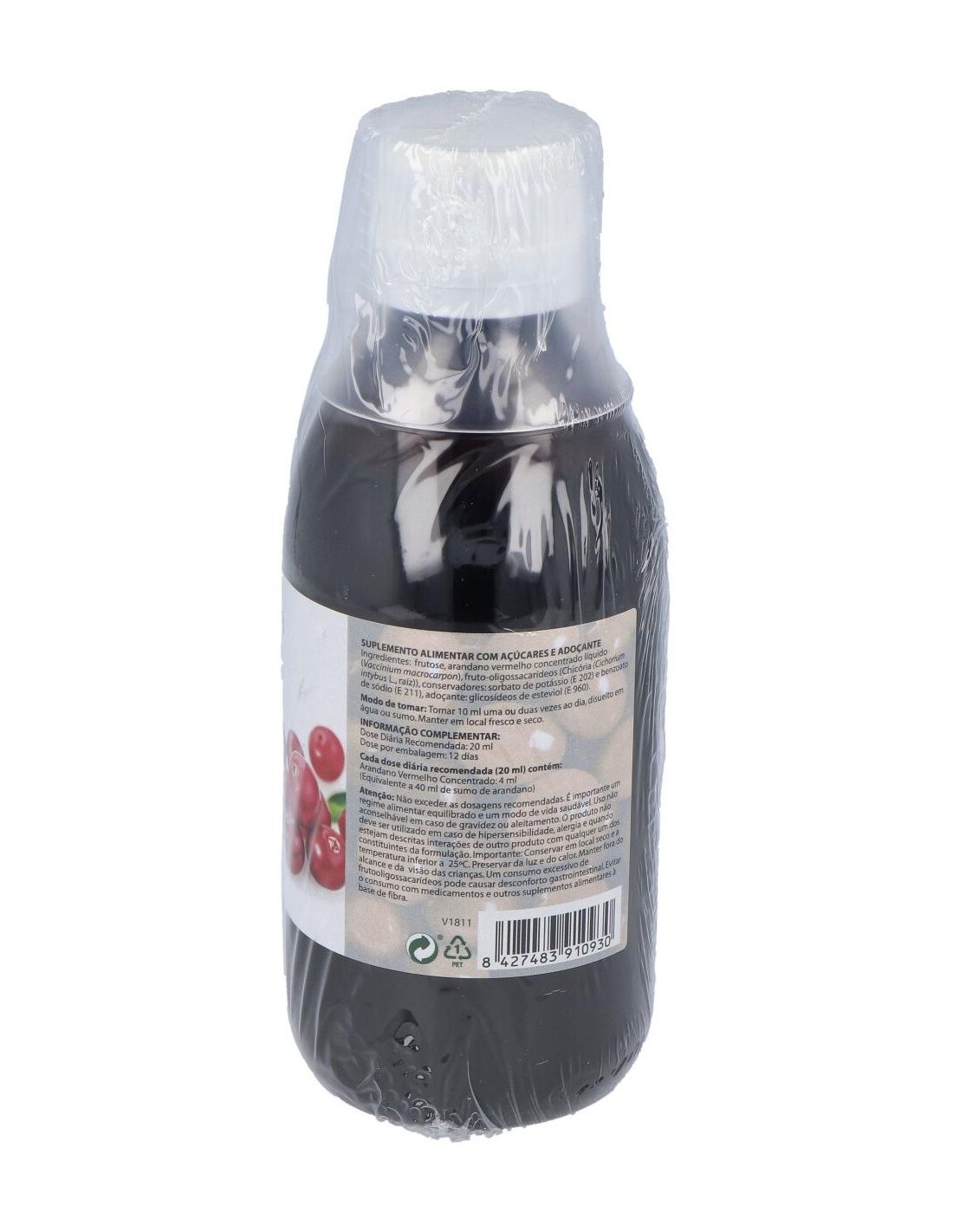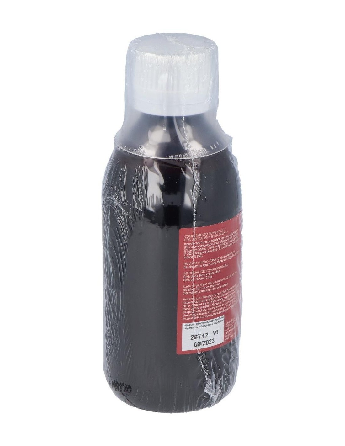 Fructosa, arándano rojo concentrado líquido (Vaccinium macrocarpon), fructooligoosacáridos (Achicoria (Chicorium intybus L., raíz)), conservadores: sorbato potásico (E 202) y benzoato de sodio (E 211), edulcorante: glucósidos de esteviol (E 960).