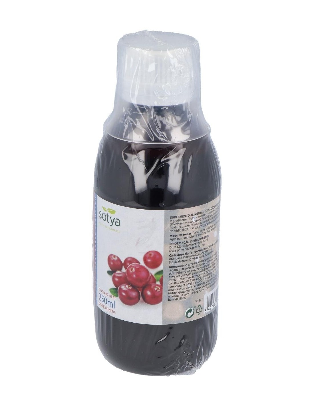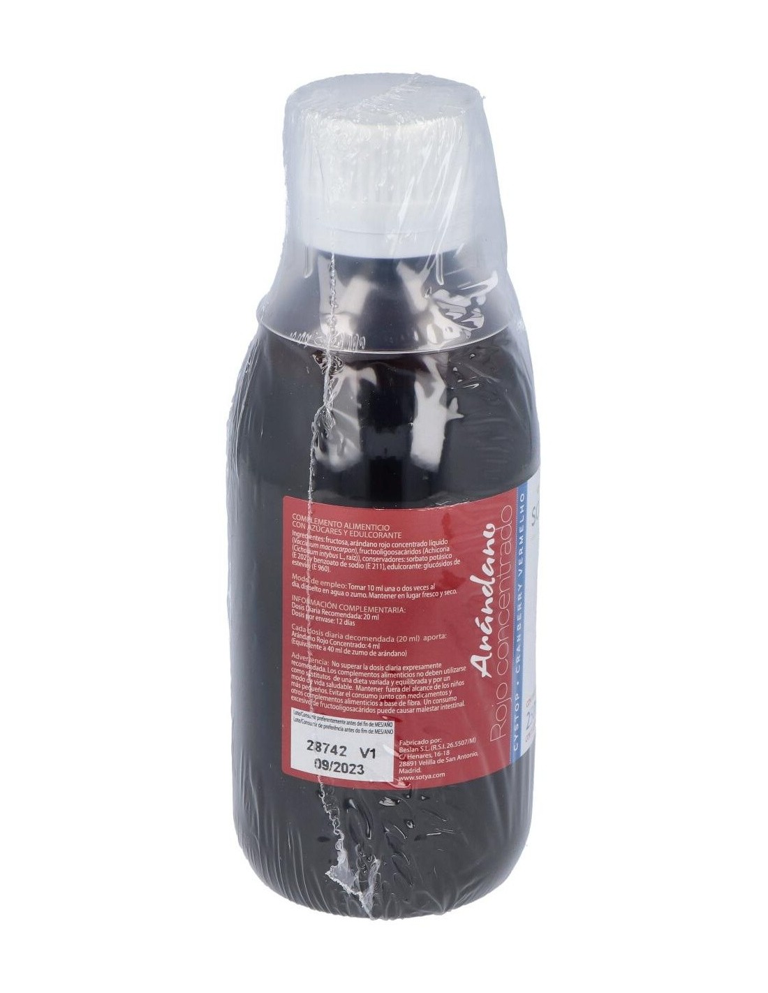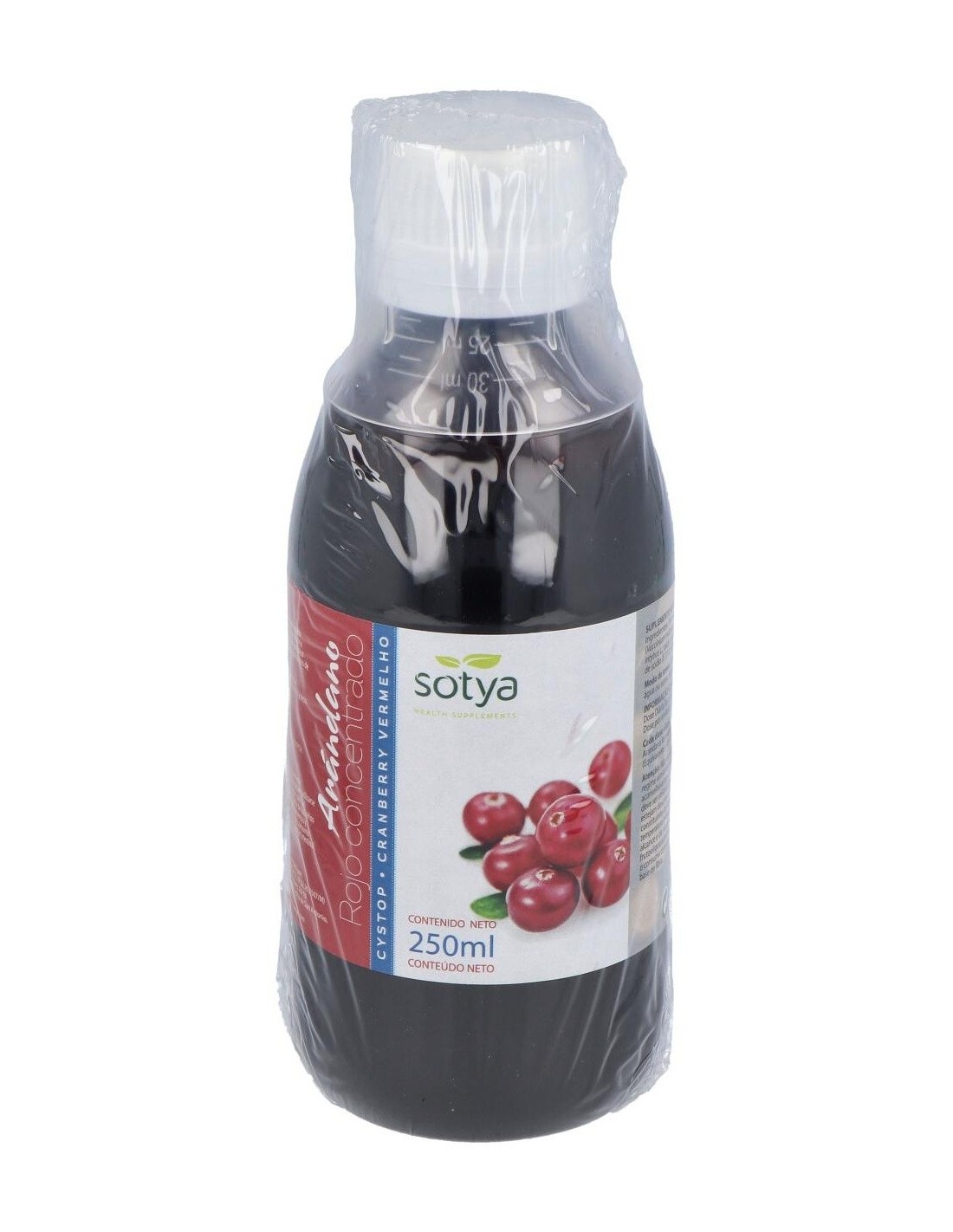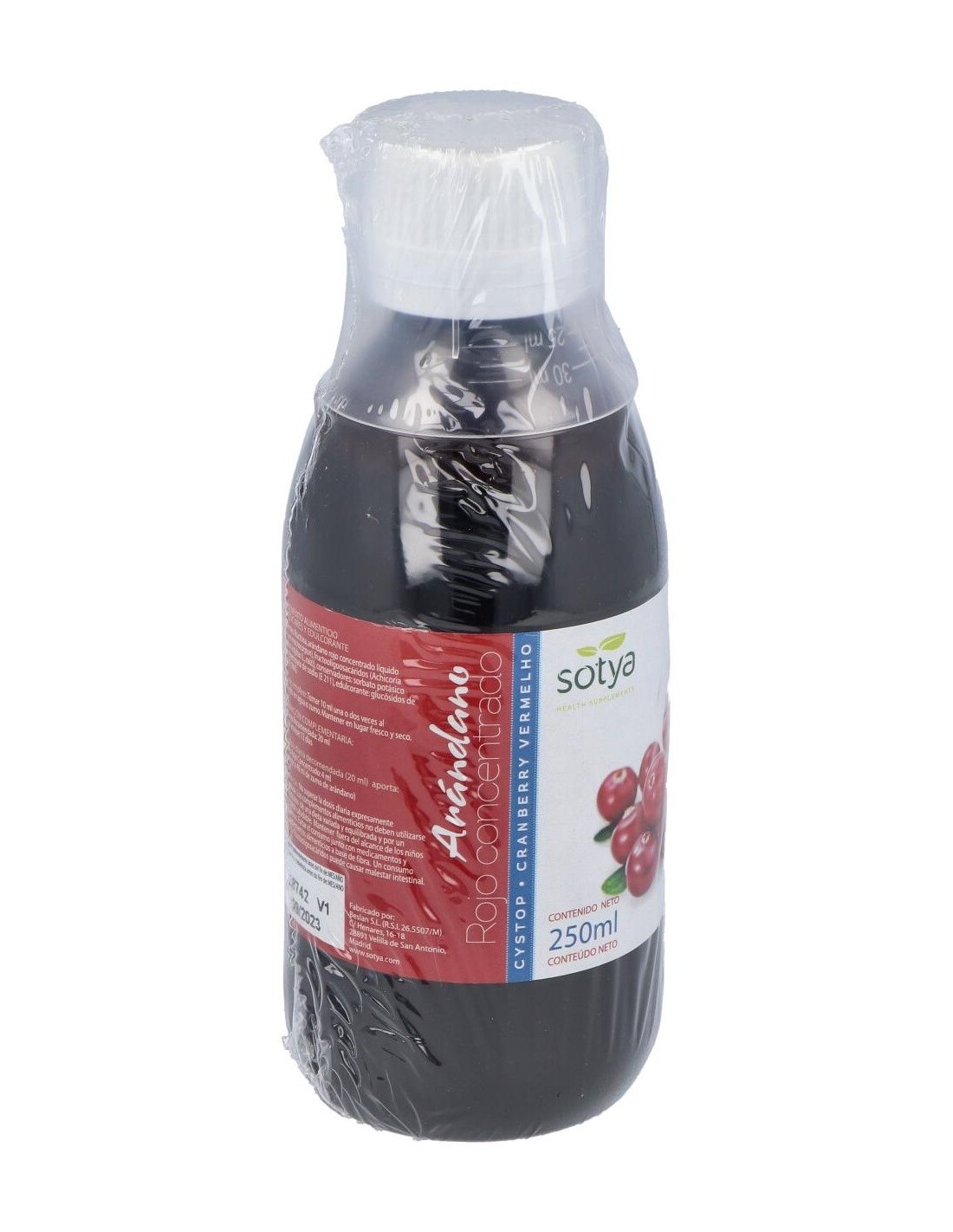 Fructosa, arándano rojo concentrado líquido (Vaccinium macrocarpon), fructooligoosacáridos (Achicoria (Chicorium intybus L., raíz)), conservadores: sorbato potásico (E 202) y benzoato de sodio (E 211), edulcorante: glucósidos de esteviol (E 960).