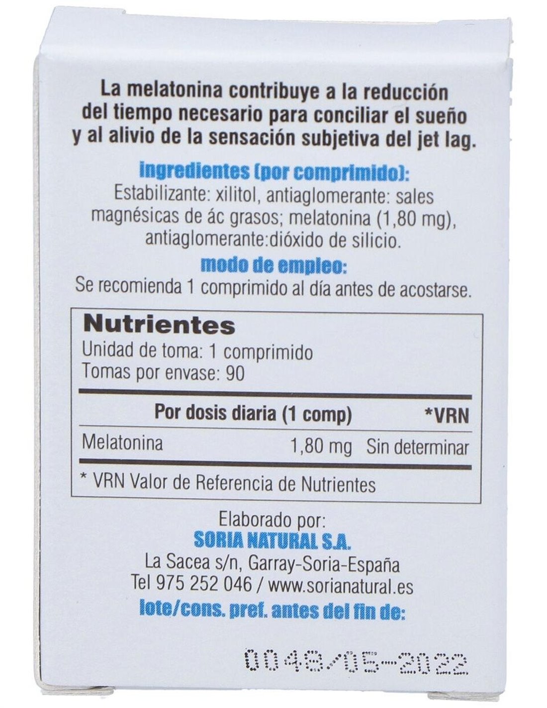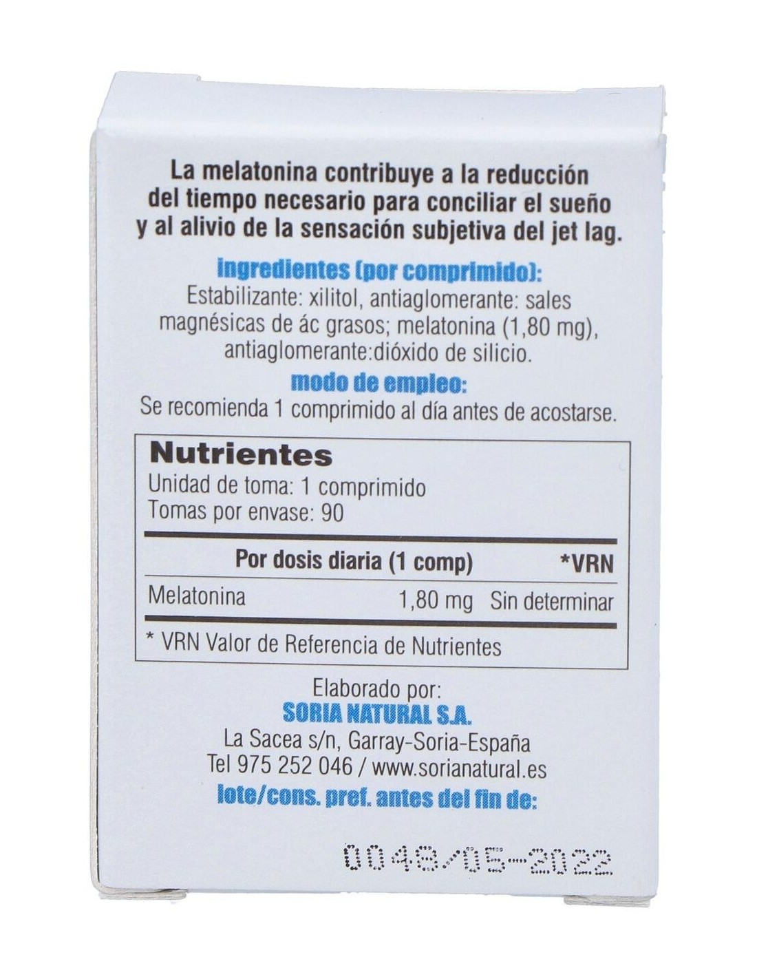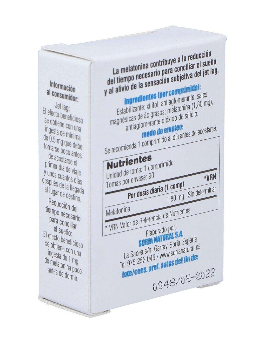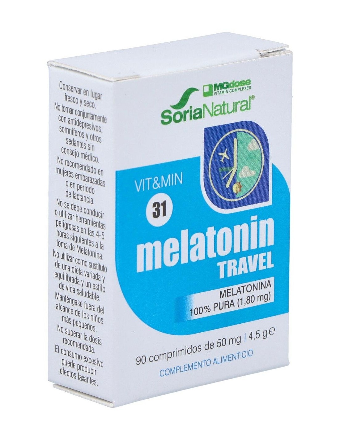 Complemento alimenticio en formato comprimidos y elaborado a base de melatonina 100% pura. La melatonina es una hormona natural que está especialmente indicada para contribuir a regular los ciclos del sueño en casos de viajes largos y jet-lag, insomnio o en personas que trabajan con turnos cambiantes o de noche.