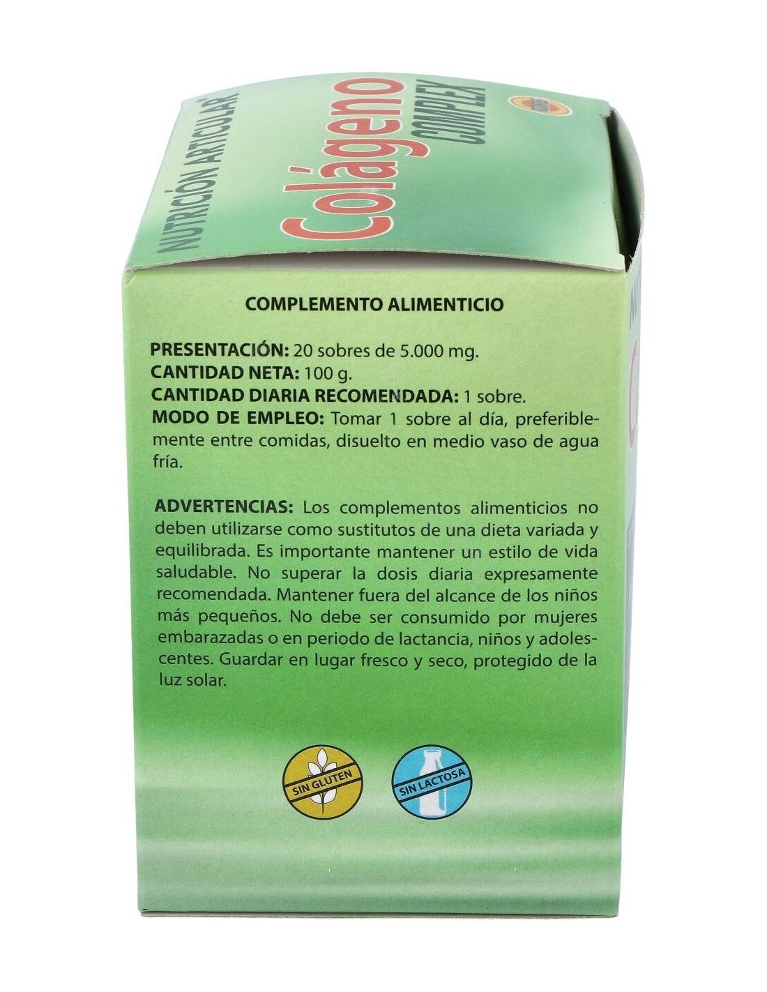 Colágeno hidrolizado, Glucosamina, Condroitín sulfato marino 90%, Extracto de bambú 70% de silicio, MSM (Metil sulfonil metano), Extracto de harpagofito (Harpagophytum procumbens D.C.), Vitamina C (L-ácido ascórbico), Ácido hialurónico, Sulfato de manganeso y Vitamina B2 (riboflavina). Maltodextrina (espesante), Sucralosa (edulcorante), aroma y zumo de limón (aromatizantes).
