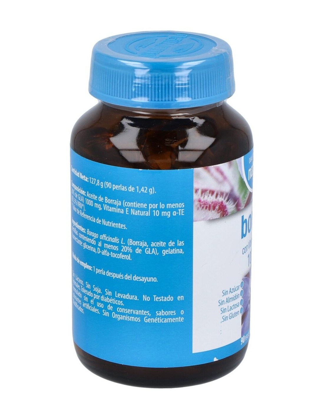 Borago officinalis L. (Borraja, aceite de las semillas conteniendo al menos 20% de GLA), gelatina, glicerina USP, D-alfa-tocoferol.