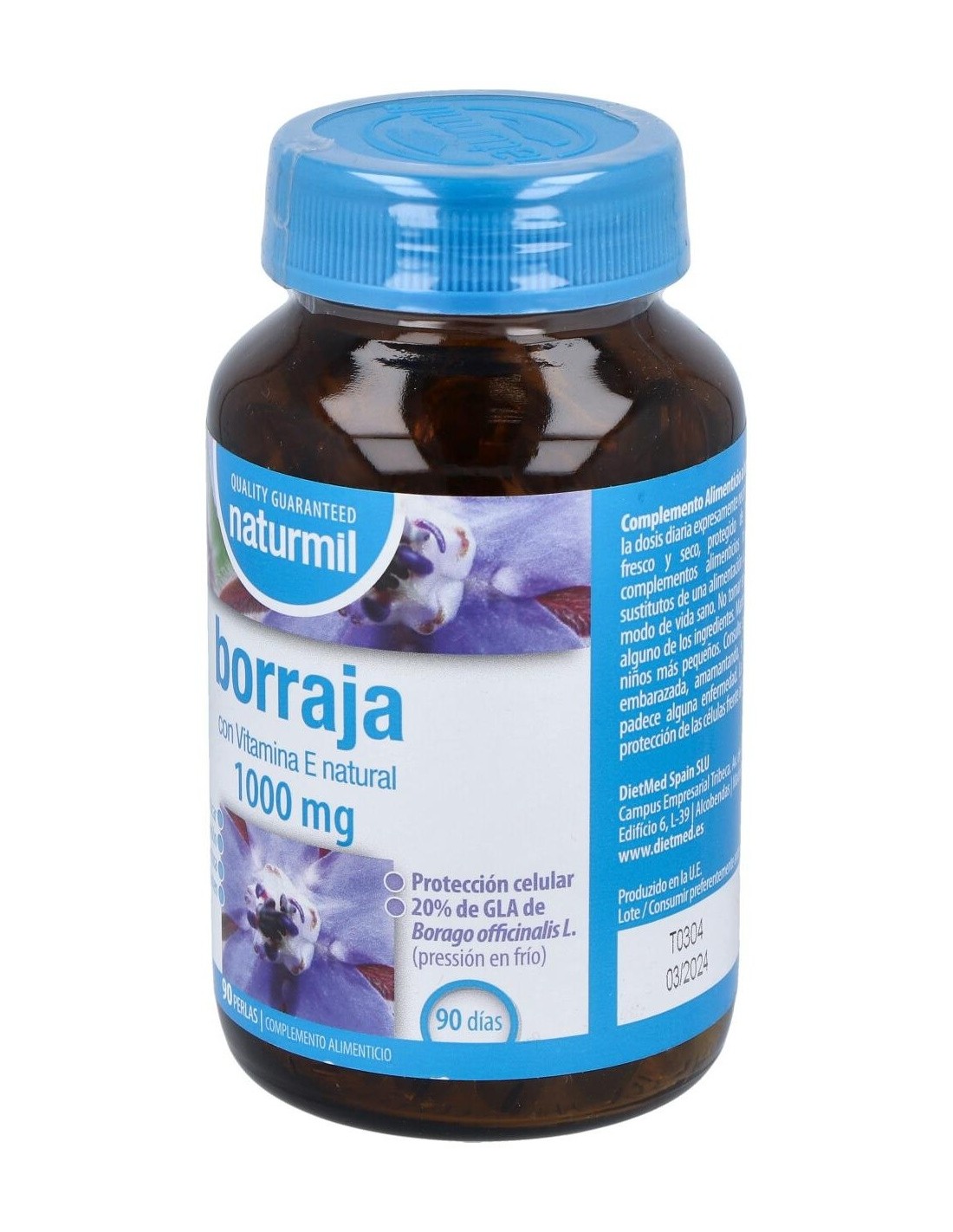 Aceite de Borraja (conteniendo al menos 20% de GLA) 1000 mg, Vitamina E Natural 10 mg a-TE (83,3 % VRN*).