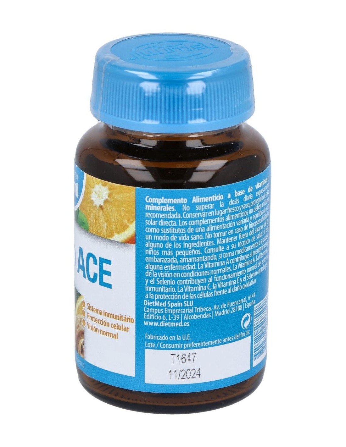 Selenio 110 µg (200% VRN*): Betacaroteno 2010 µg RE (250 % VRN* en Vitamina A): Vitamina C 80 mg (100% VRN*): Vitamina E natural 24 mg a-TE (200% VRN*): Aceite de Borraja (contendo 20% GLA) 650,24 mg: Magnesio 112,5 mg (30% VRN*): Ácido Pantoténico 12 mg (200% VRN*): Vitamina B2 2,8 mg (200% VRN*): Vitamina B6 2,8 mg (200% VRN*).