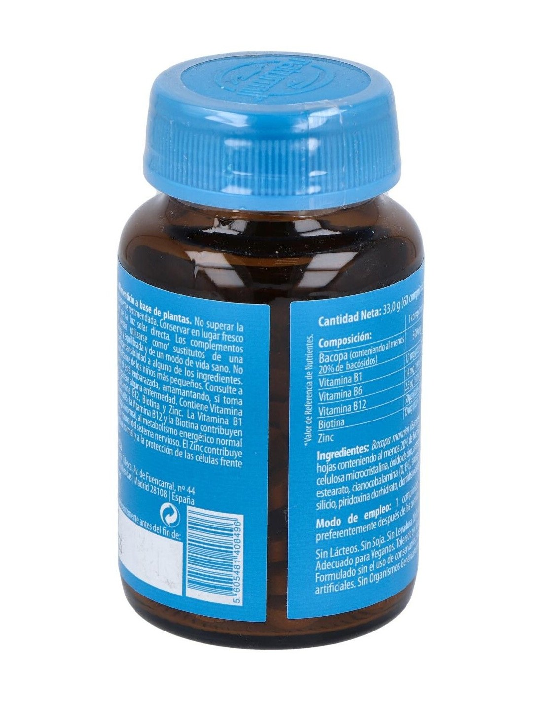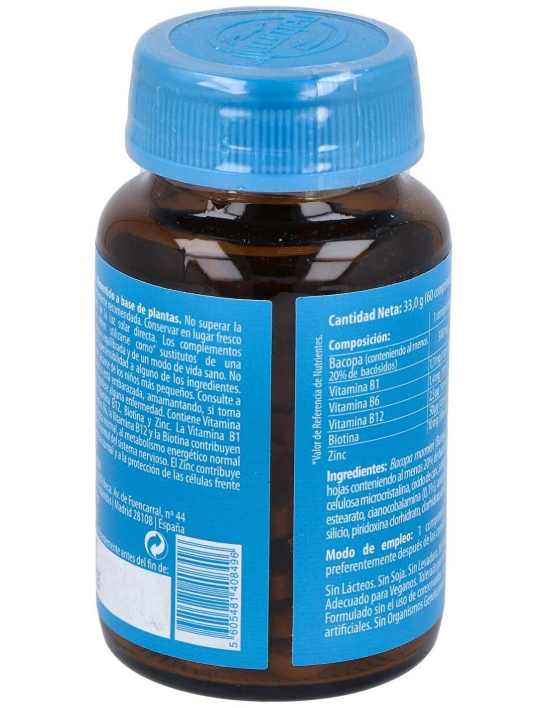 Bacopa (contiene al menos 20% bacósidos) 600 mg Vitamina B1 2,2 mg (200% VRN*), Vitamina B6 2,8 mg (200% VRN*), Vitamina B12 5 u µg (200 % VRN*), Biotina 100 µg (200% VRN *), Zinc 20 mg (200% VRN*).
