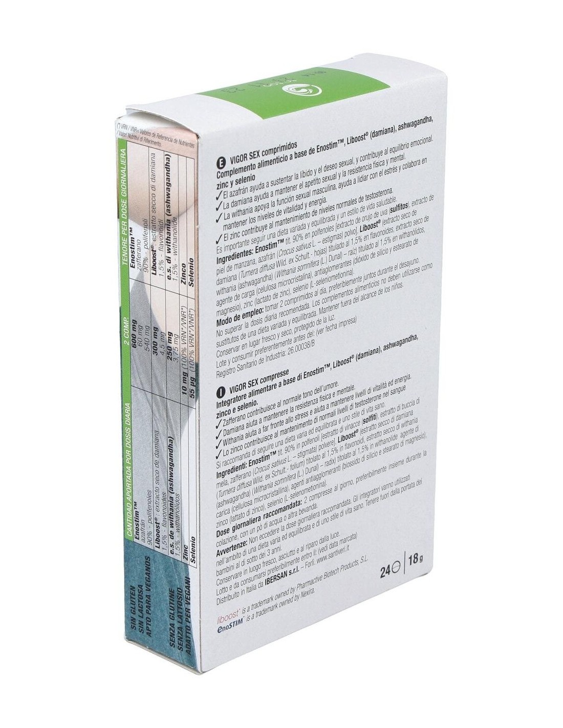 Santiveri Vigor Sex 24Comp es un complemento alimenticio a base de Enostim, Liboost® (damiana), ashwagandha, zinc y selenio que ayuda a sustentar la libido y el deseo sexual.