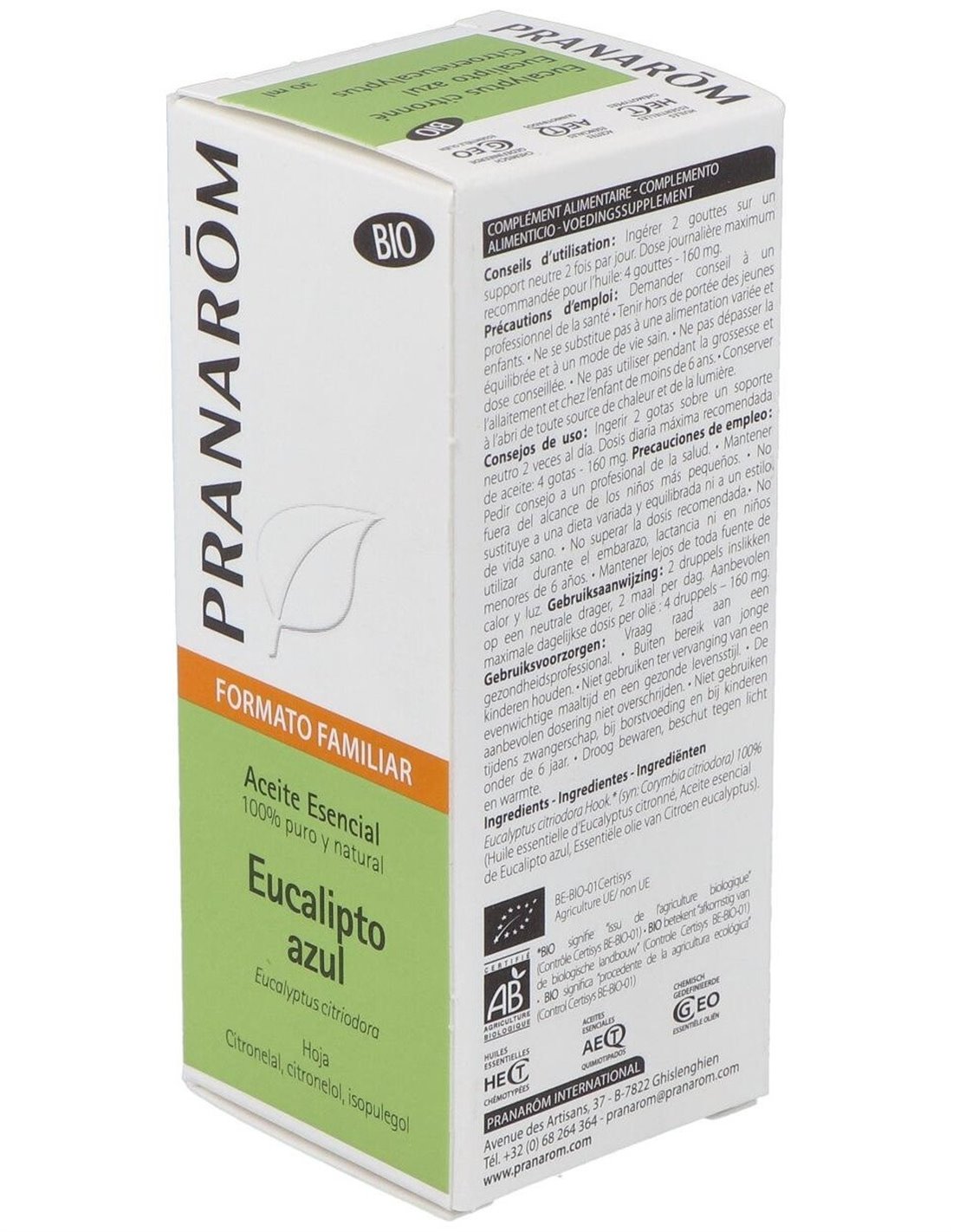 Eucalipto Azul Hoja Aceite Esencial Bio 30Ml. de Pranarom Aceites