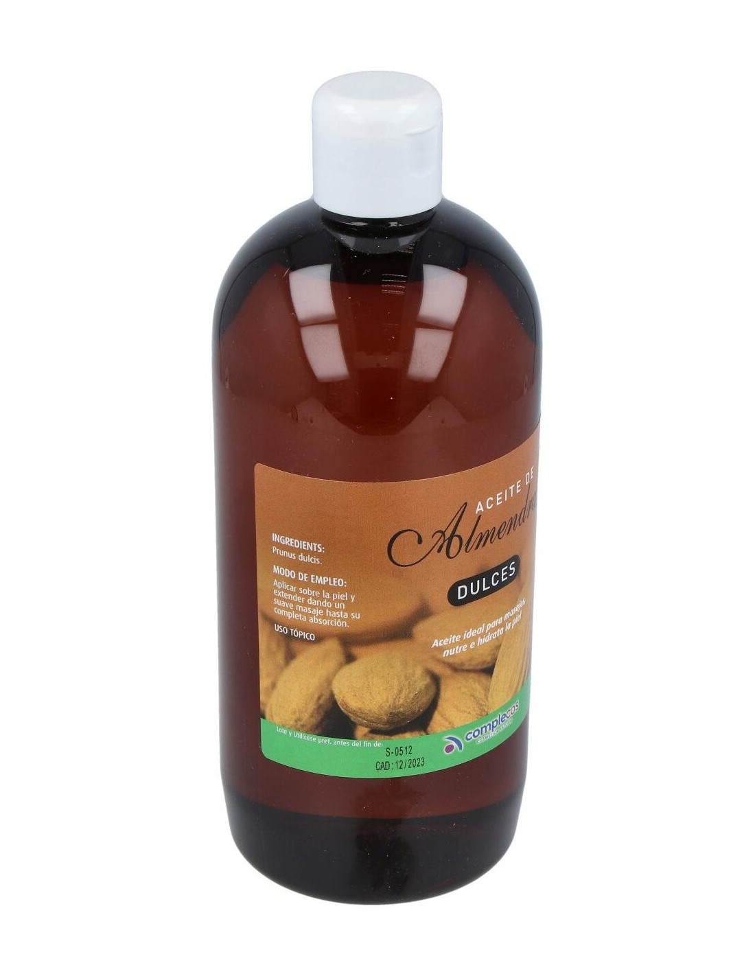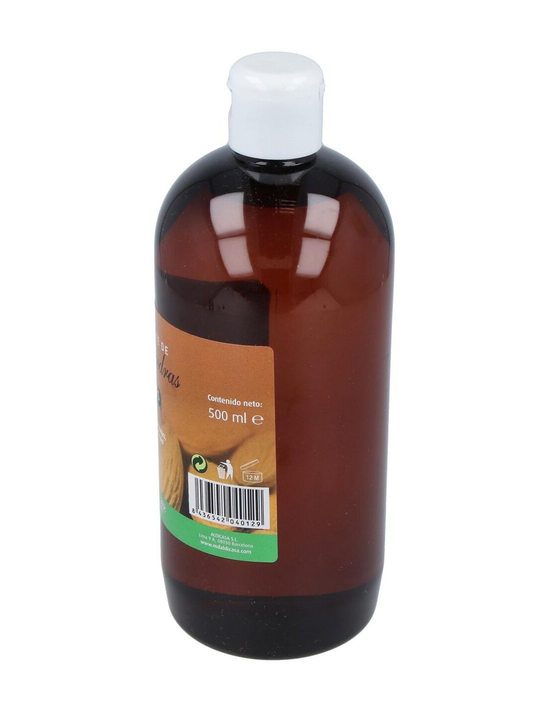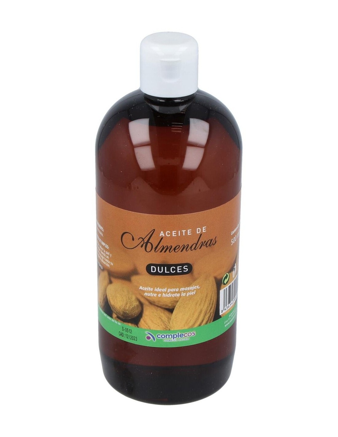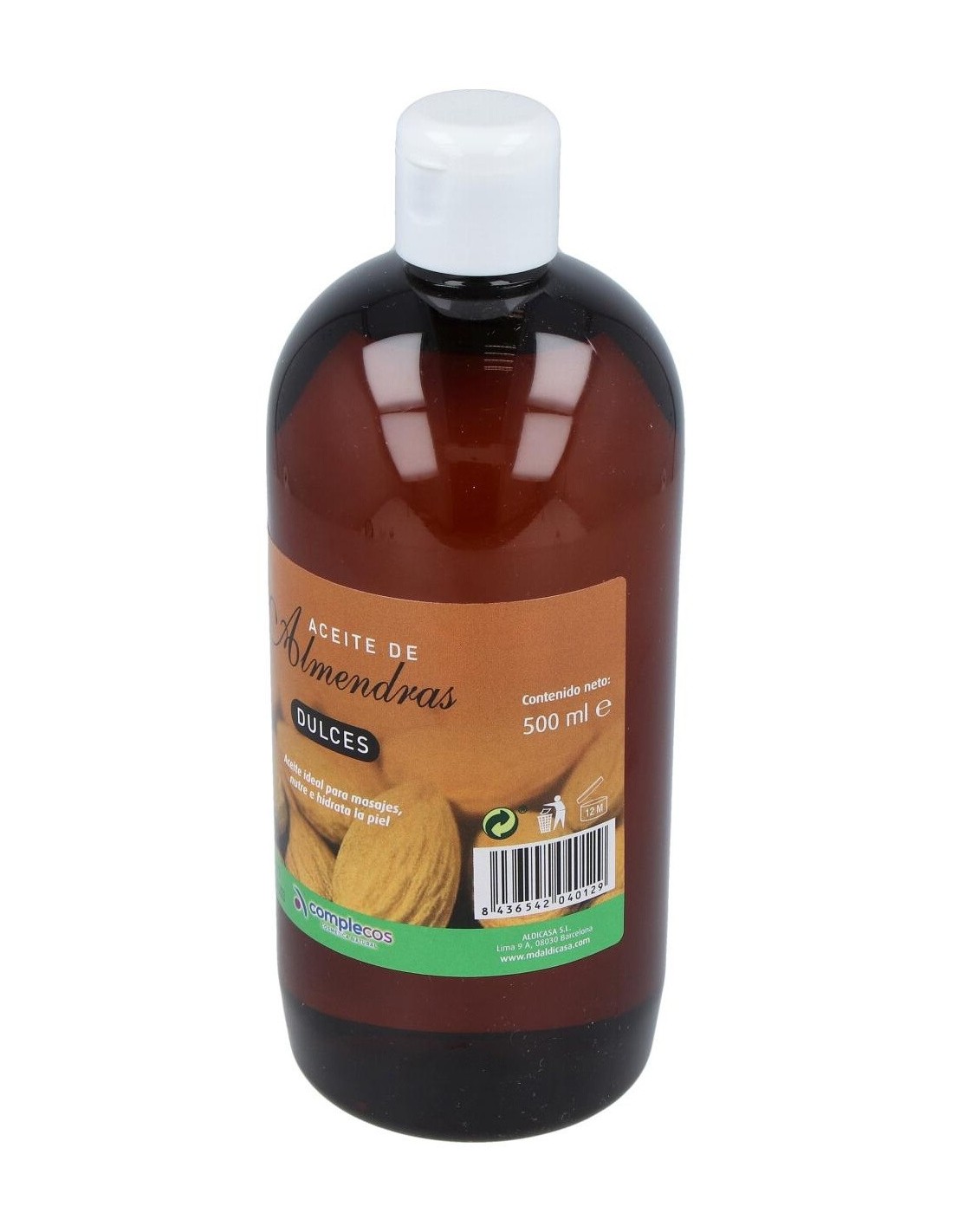 Aceite de almendras o aceite de almendras dulces, es el aceite que se extrae de este fruto. Es 100% puro y natural, hidratante y calmante. Ayuda a prevenir la aparición de estrías. Contribuye positivamente contra las afecciones cutáneas como piel irritada o seca, heridas o dermatitis, entre otras. Ayuda a prevenir y suavizar las arrugas tanto del rostro como del cuello. Regenera y nutre los cabellos más secos y castigados. 500ml.