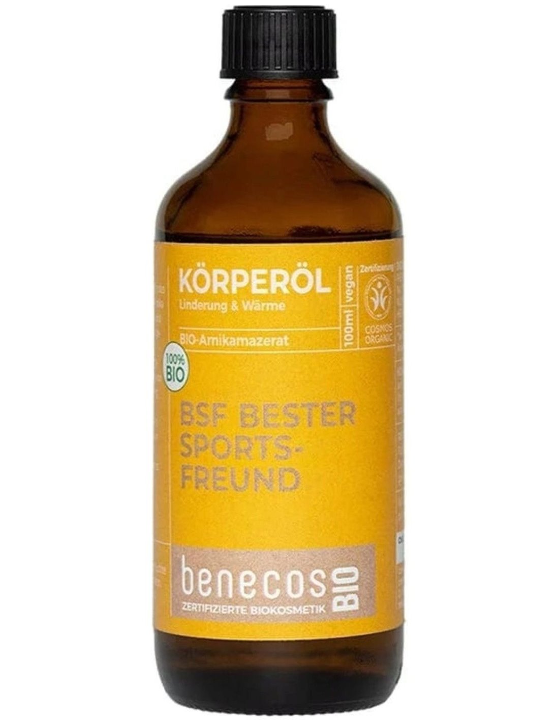El valioso aceite de macerado de arnica benecosBIO combina las propiedades nutritivas del aceite de oliva con los ingredientes activos del árnica. El complejo de ácido oleico y vitamina E que contiene el aceite de oliva regeneran la piel. Debido a su efecto de mejora de la circulación, el macerado se usa a menudo para aliviar la tensión y tratar hematomas. Los deportistas lo utilizan principalmente para relajar los músculos, pero también es ideal como aceite de masaje. No Contiene Ingredientes animales/ no testado en animales. No Contiene aceites minerales derivados del petróleo. Sin conservantes, colorantes ni perfumes sintéticos. Producto certificado COSMOS ORGANIC. Fórmula vegana.