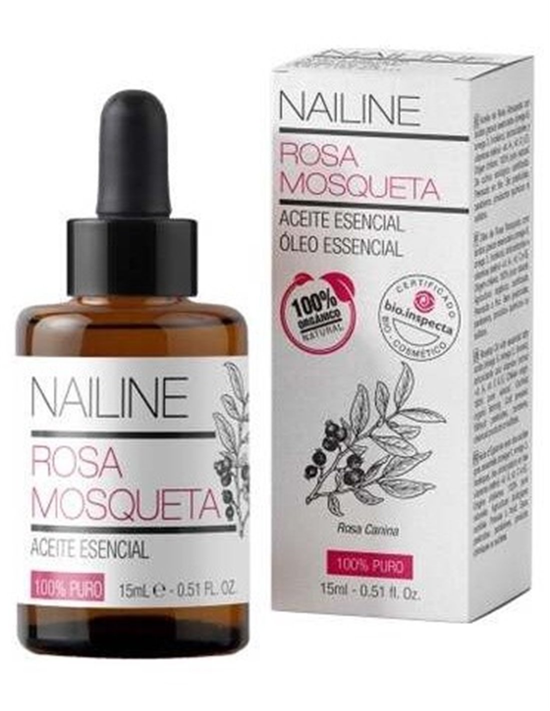 Nailine Aceite de Rosa Mosqueta proviene de cultivos ecológicos de Chile, de primera prensada en frío, dispone de doble certificación ecológica que garantiza la máxima calidad del producto. Su composición es rica en numerosos ácidos grasos esenciales (ácido omega 6, omega 3, linoleico), antioxidantes y vitaminas (retinol vitamina A- , vitamina C, E). Retrasa los signos de envejecimiento prematuro y arrugas. Mejora las estrías y manchas de la piel. Combate los efectos del foto-envejecimiento. Rehidrata la piel seca. Disminuye las cicatrices quirúrgicas y accidentales. Mejora la regeneración de la piel frente a quemaduras.