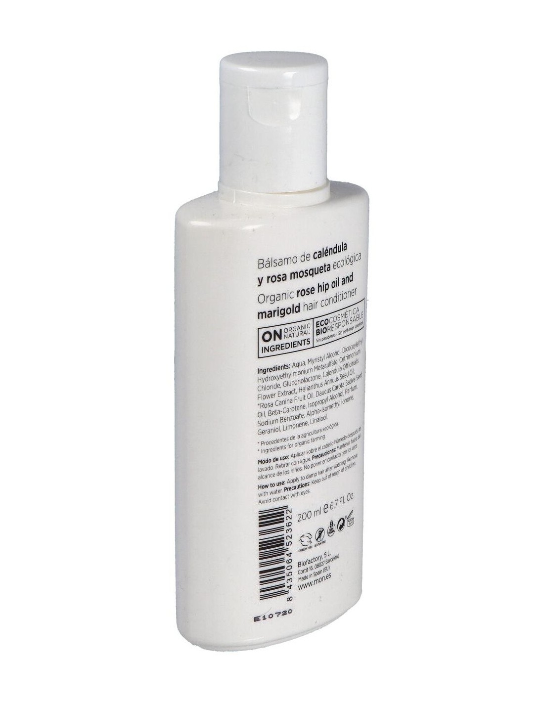 Bálsamo acondicionador para el cabello especialmente recomendado para cabellos secos y castigados. Su fórmula a base de extractos de plantas de cultivo ecológico contribuye a lucir un pelo sano y brillante. El extracto de rosa mosqueta ayuda a reparar, renovar e hidratar el cabello. Su ingrediente de caléndula, conocida por sus efectos curativos, ayuda a calmar irritaciones y enrojecimientos y alivia picores y eccemas.