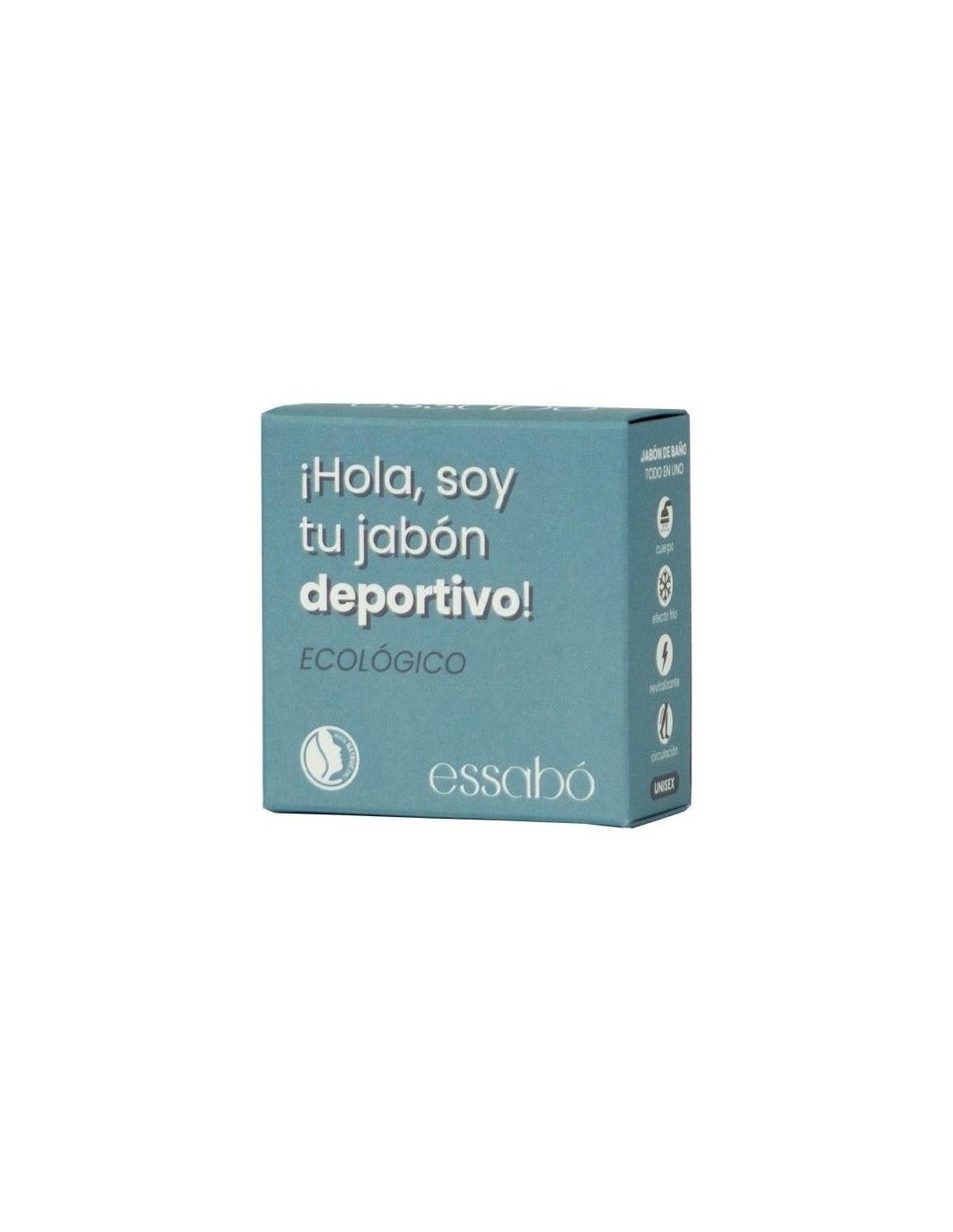 Essabó Deportivo es un jabón cosmético de baño que limpia, refresca y ayuda a la recuperación muscular tras el ejercicio. Gracias al efecto frío procedente del mentol y al efecto analgésico de las sales de magnesio, relaja los músculos y alivia las molestias físicas tras el ejercicio. Su base está elaborada con aceite de coco de agricultura sostenible y aceite de oliva procedente de cultivos bio españoles. Elaborado artesanalmente mediante saponificación tradicional en frío. Idóneo para su uso tras una dura sesión de deporte. Cuenta con el certificado cosmético ecológico NATRUE que audita todo el proceso de producción; desde la calidad, trazabilidad y origen de los ingredientes hasta el cosmético final pasando por fabricación, instalaciones y documentación.