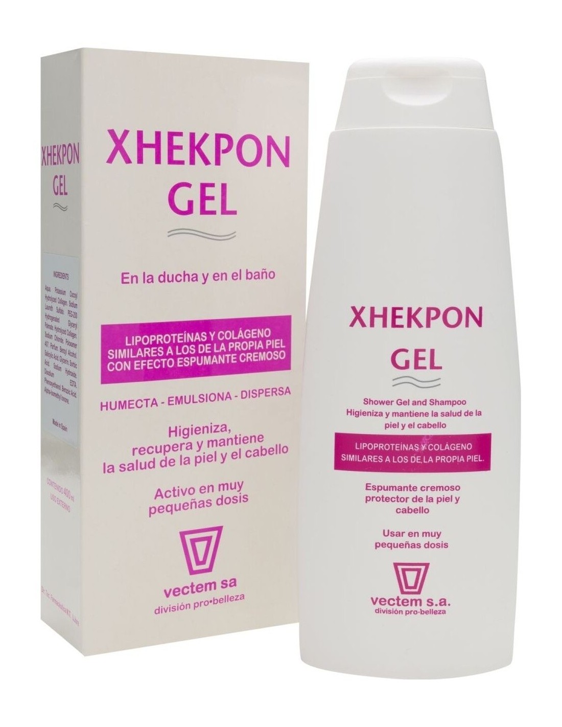 El gel Xhekpon® es un gel de baño y ducha de alta calida dermatológica indicada para la higiene diaria y para suavizar la piel y el cabello.