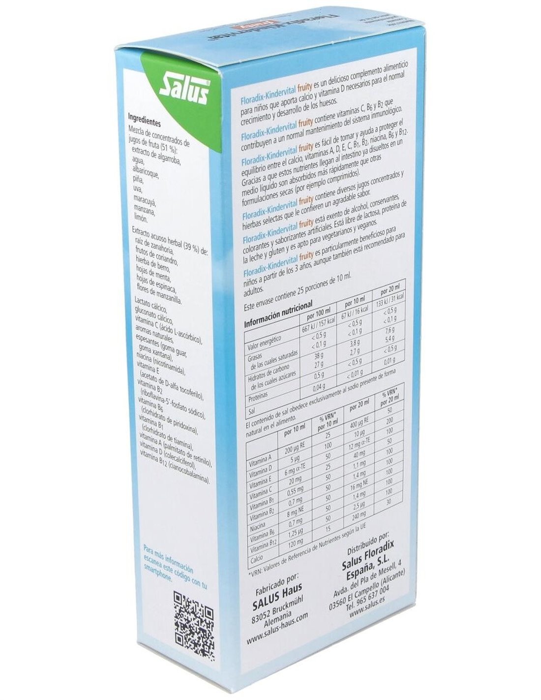 Floradix Kindervital® Fruity es un jarabe fórmulado especialmente para los niños que aporta las cantidades necesarias de calcio y vitamina D para garantizar un correcto desarrollo de los huesos.