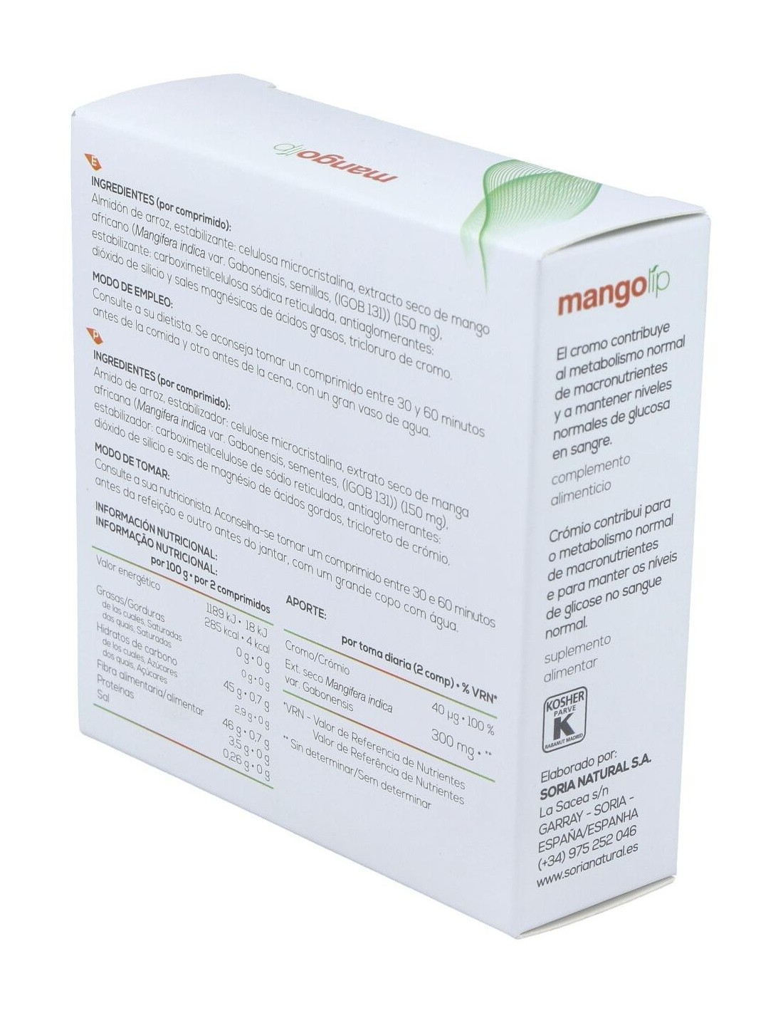Almidón de arroz, estabilizante: celulosa microcristalina, extracto seco de semillas de mango africano (IGOB 131) (150 mg), estabilizante: carboximetilcelulosa sódica reticulada, antiaglomerantes: dióxido de silicio y sal magnésica de ác grasos, tricloruro de cromo.