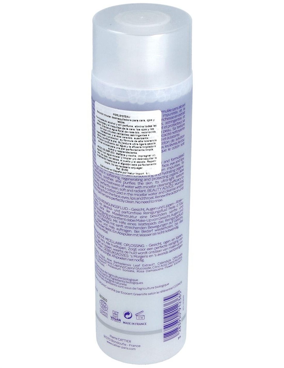 Solución limpiadora basada en la tecnología micelar y formulada sin alcohol y sin perfume. Permite eliminar delicadamente todas las impurezas y el maquillaje de la cara, los ojos y los labios. Su fórmula extremadamente delicada, rica en extracto floral de rosa bio, (calmante, astringente e hidratante), y en aloe vera bio, (suavizante, regenerador y protector), refresca, calma y purifica la piel. Su textura ultraligera asocia el frescor tonificante del agua y la eficacia limpiadora de las micelas para una piel perfectamente limpia, suave y resplandeciente.