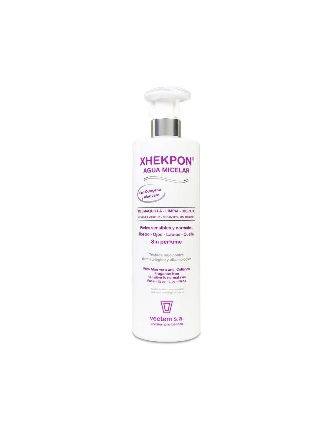 Agua micelar diseñada para desmaquillar, limpiar e hidratar la piel del rostro. Elaborada con una fórmula a base de extracto de Aloe vera y colágeno, que ayudan a tonificar y a nutrir profundamente el rostro, sin generar irritaciones en la epidermis. Contribuye a mantener la salud cutánea y es adecuada para la piel sensible del contorno de los ojos o labios. Favorece la protección antioxidante y estimula el metabolismo celular de reparación. Dermatológicamente probada. Indicada para todo tipo de pieles, incluso las sensibles.