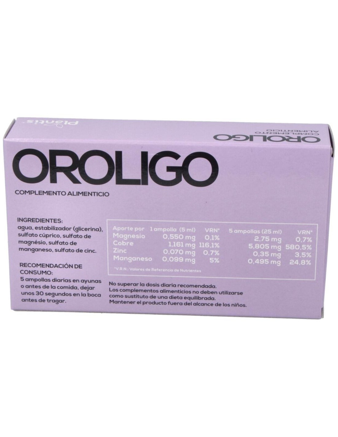 Complemento alimenticio en formato ampollas, rico en oligoelementos, que contribuye a conseguir un buen estado de salud general. Los oligoelementos benefician al equilibrio del cuerpo gracias a todos los minerales que contienen, en este caso magnesio, manganeso, cobre y zinc, interviniendo en el buen funcionamiento del organismo en general.