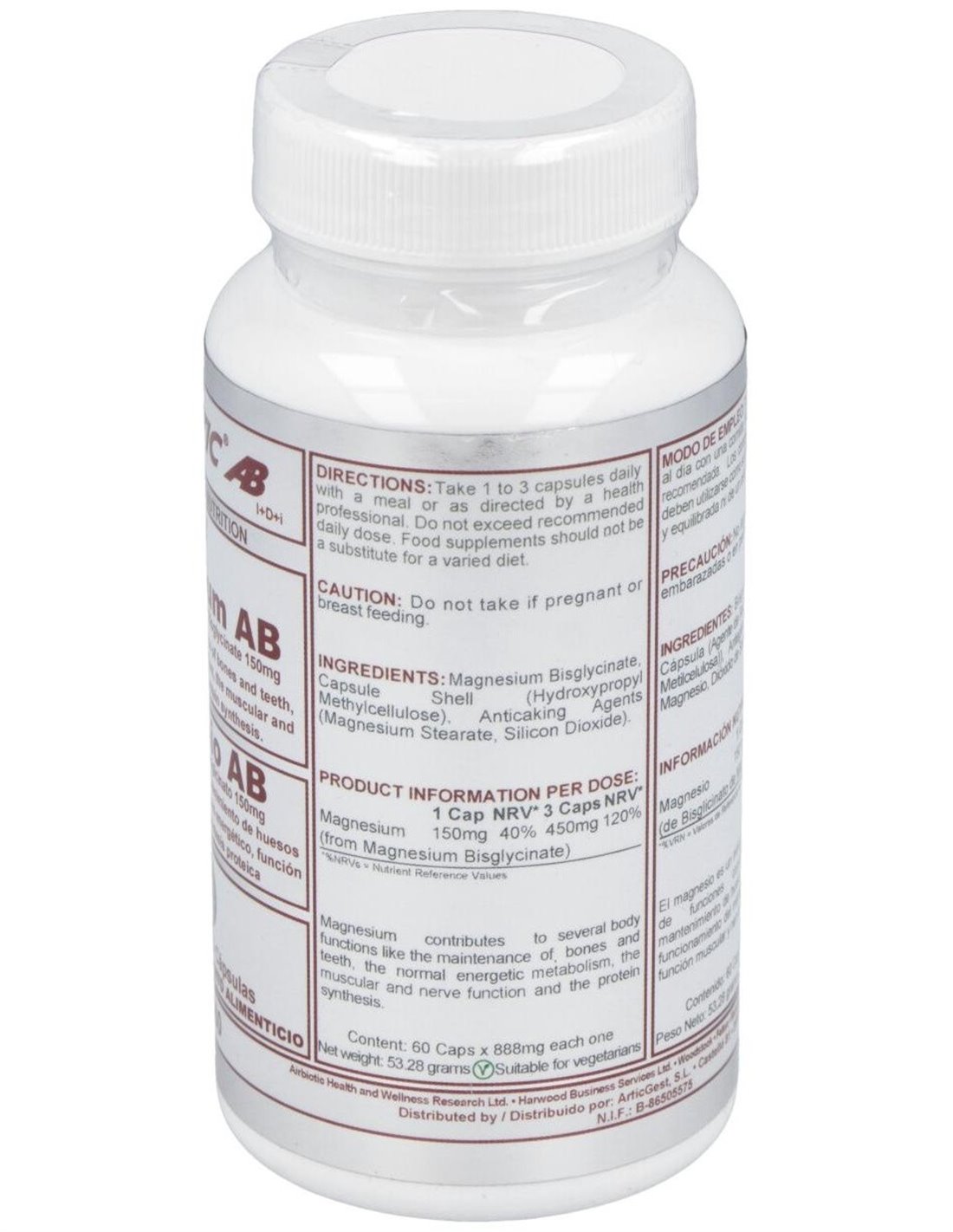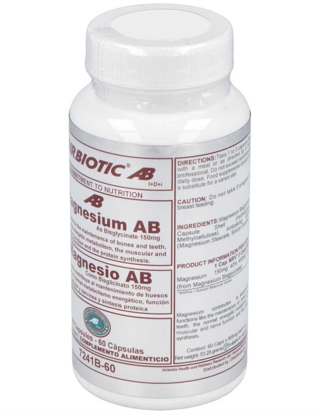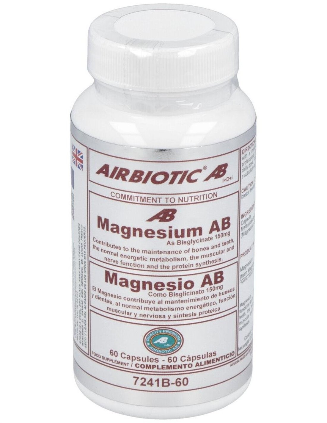 Airbiotic Magnesio AB 150mg 60cáps es un complemento a base de magnesio, un mineral esencial para el metabolismo energético normal. Ayuda a favorecer el funcionamiento normal del sistema nervioso y muscular y contribuye a la síntesis proteica normal y a la formación del tejido conectivo.